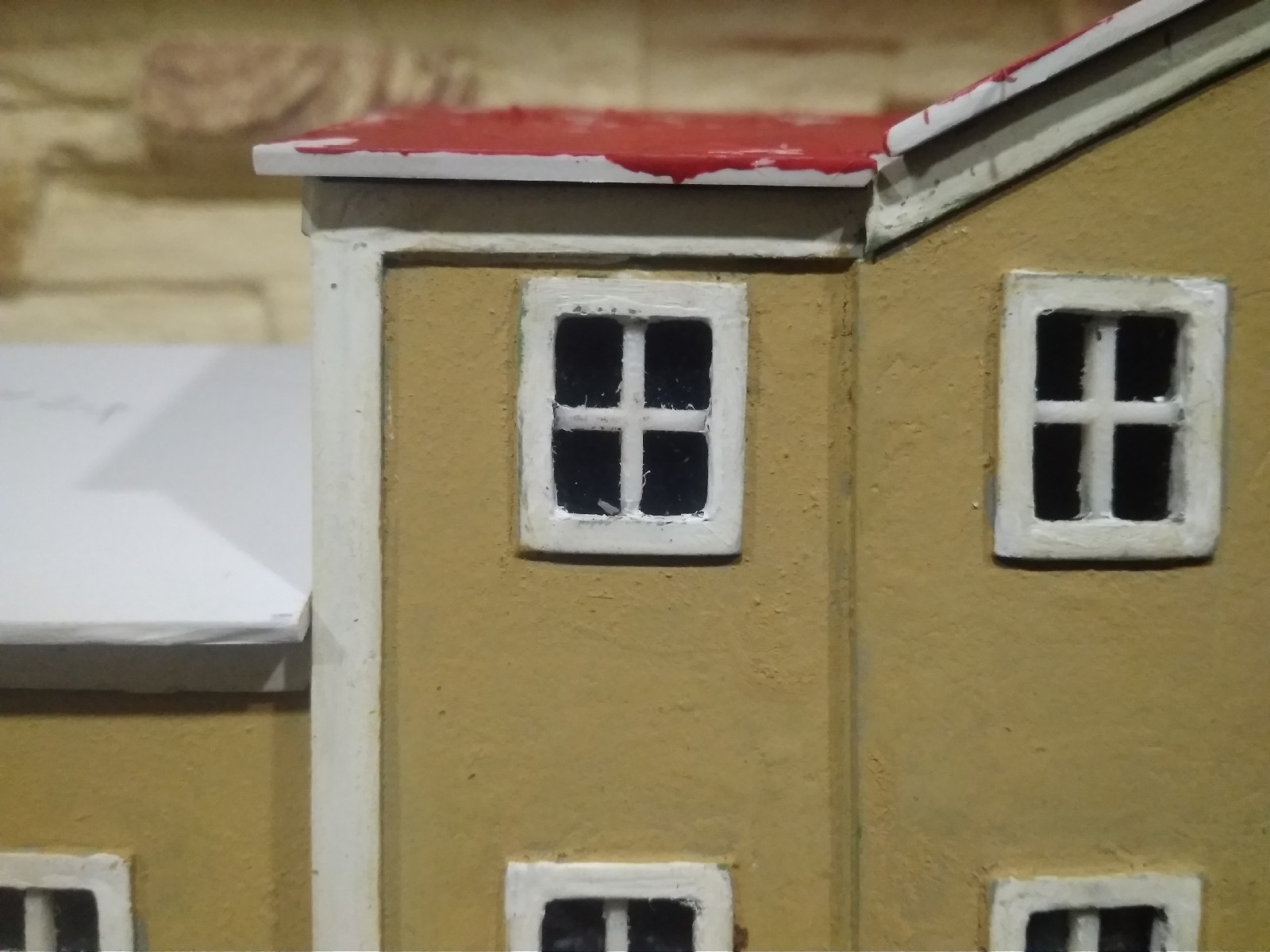 Мабуть зараз битимуть ногами - пофарбував я вокзал і розстроївся :( Найбільше зауваження до вікон, бо на стінах я спеціально намагався зробити імітацію "шуби", для цього навмисне взяв погану фарбу, у якій завелись крупинки, потім злегка пройшов наждаком. Ну й будівля по задумі трохи обшарпана має бути, так і вийшло. А от вікна мені не подобаються :(
