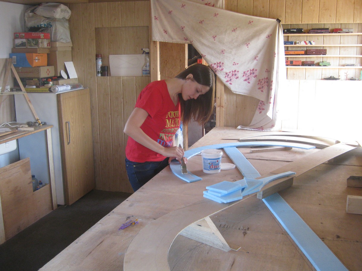 А вот новый макет пострадал больше.Котэ сделало там спальню.Соответственно