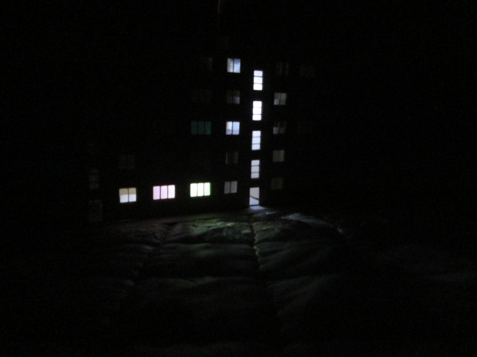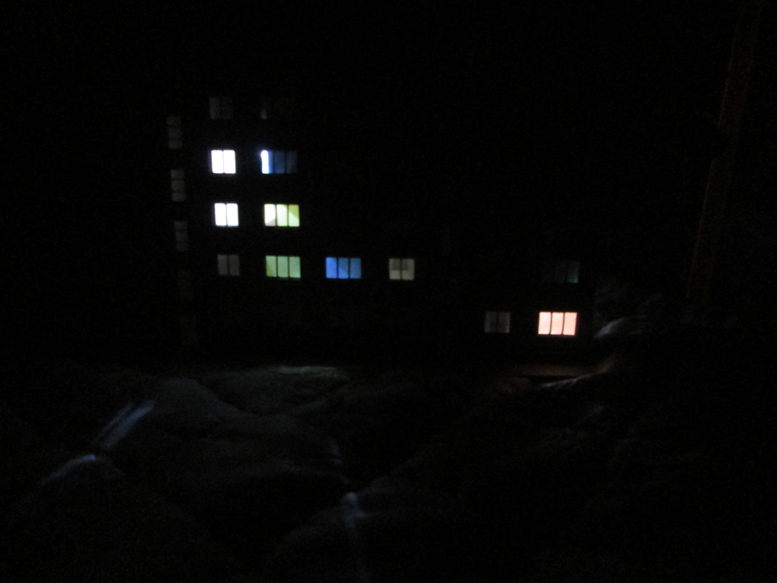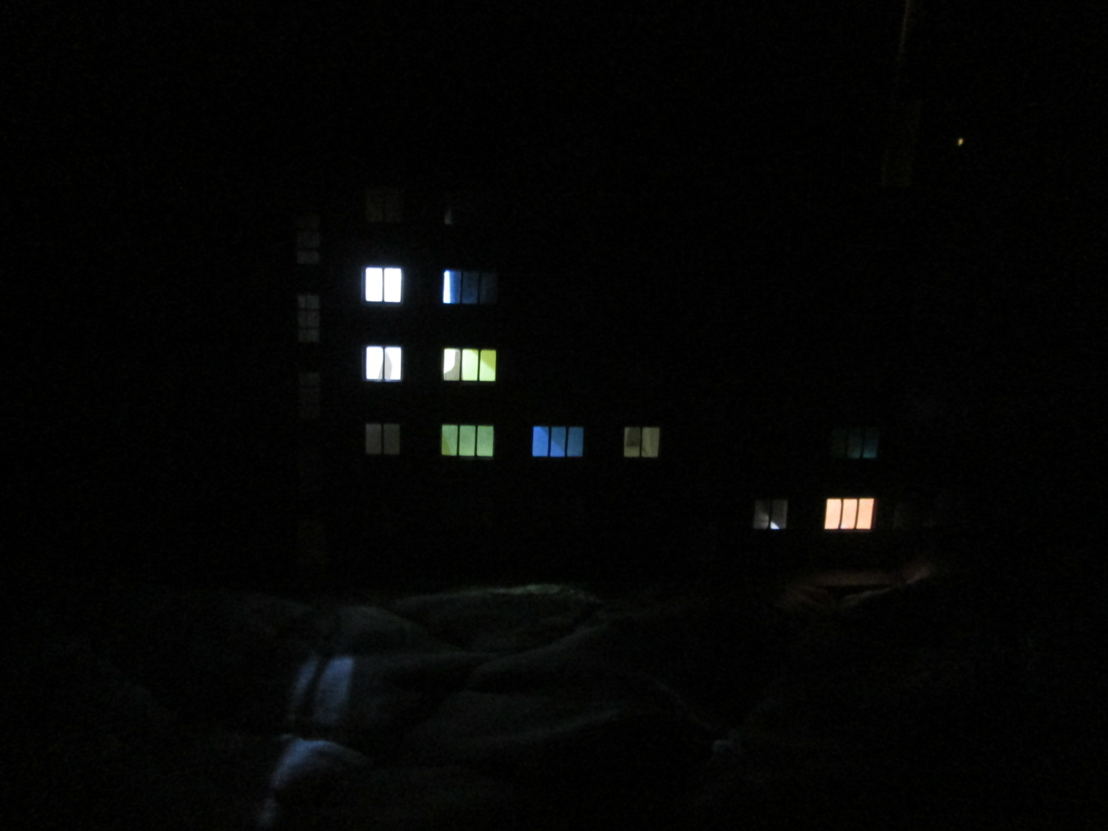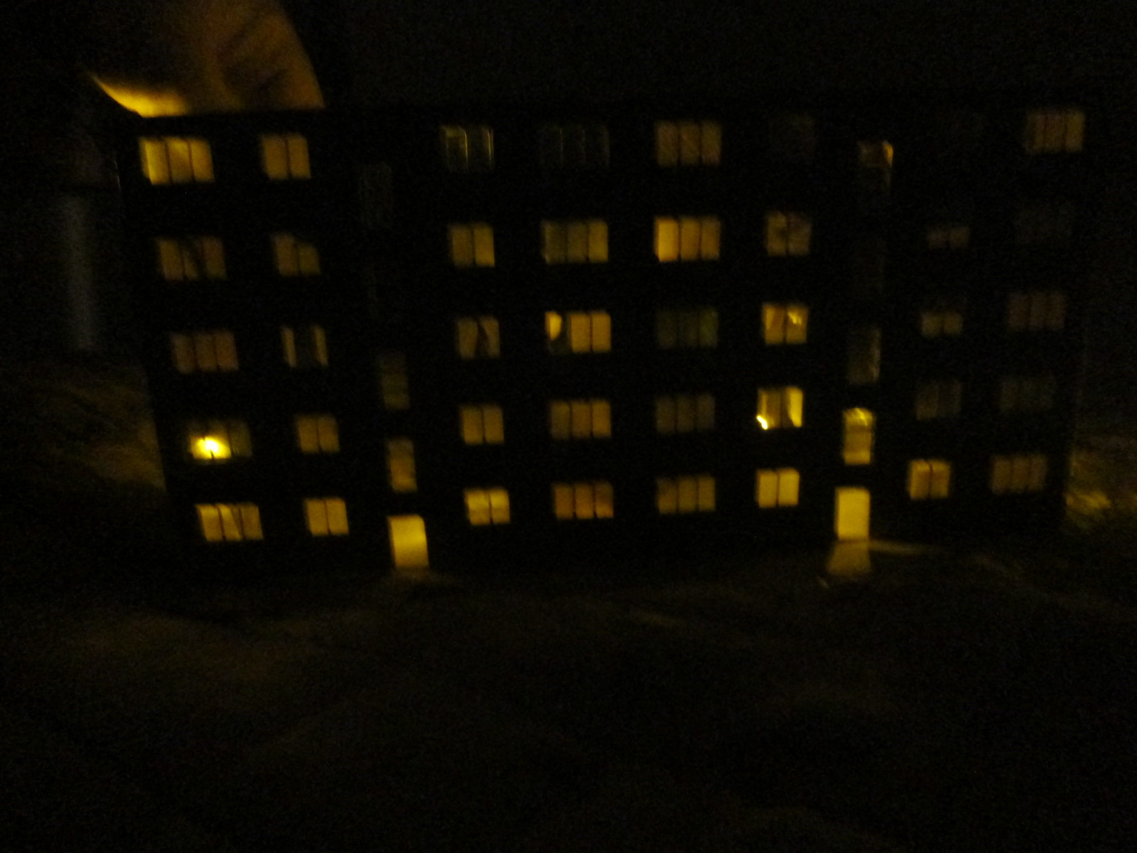 Виглядає натюрліх, але однотонно. Все ж таки в квартирах різні лампи, штори і від цього різні кольори у вікнах. Краще було б використати світлодіоди жовті, білі холодного світла і білі теплого світла. Для їх живлення буде достатньо 5-12 В постійного струму. Підійде якась стара зарядка для мобільного а то й взагалі батарейка, якої вистачить на довго. В різних квартирах різні діоди поставити і все одразу оживе. Якщо надумаєте, то зможу допомогти в азах електроніки.