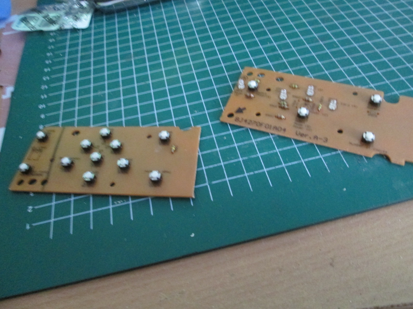 накидал на пластике путевую схему: кругляши - это где планируется поставить переключатели вкл/выкл, квадратики - кнопочки управления стрелками. думаю для начала пойдет такой пульт