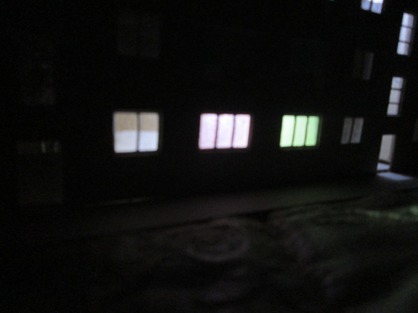Или просто некоторые окна желтоватым лаком покрыть - это поменяет оттенок свечения.