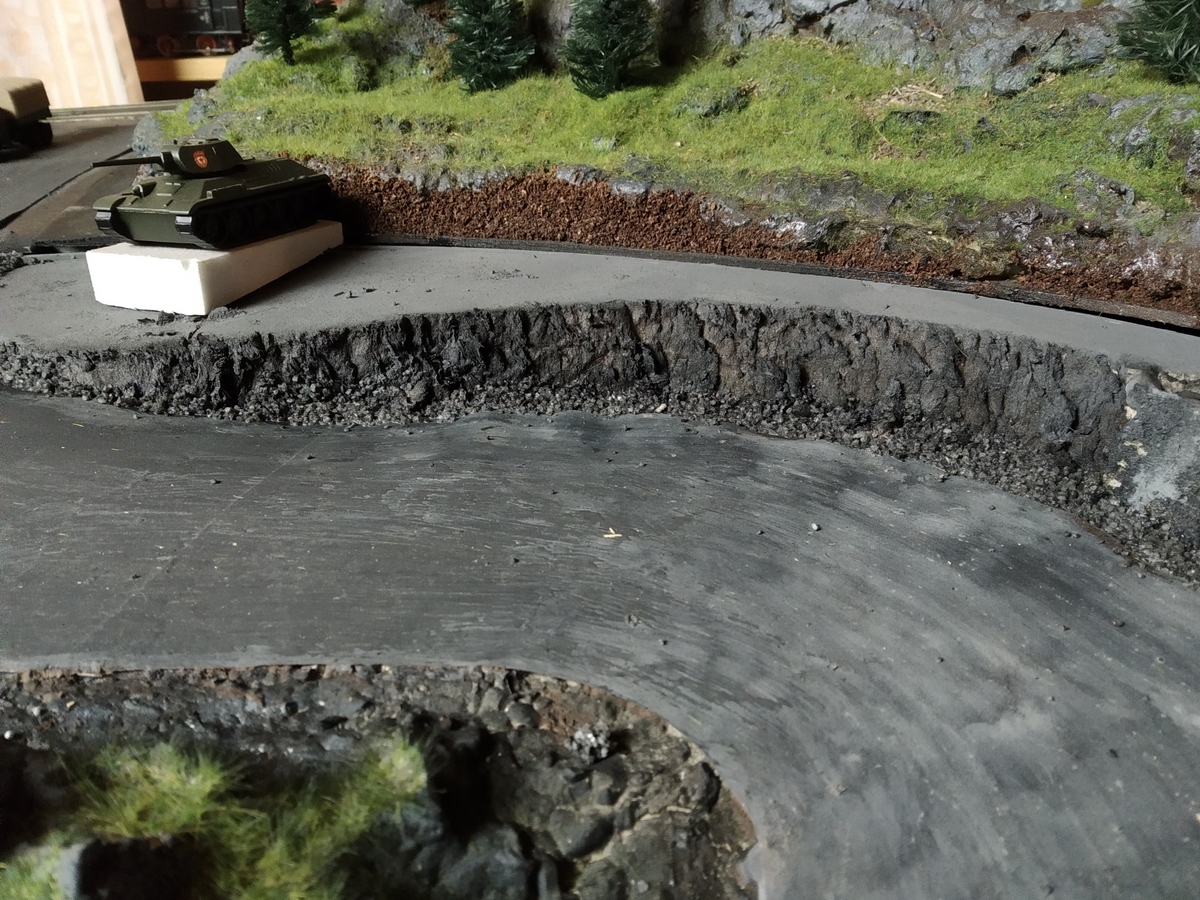 С цветом окончательно ещё не определился. Преобладает тёмный потому, что подразумевается настил из деревянных шпал. Расшивка сделана исходя из размера шпал под этими переездами, а они у меня 30,5 мм в длину и 3 мм в ширину.