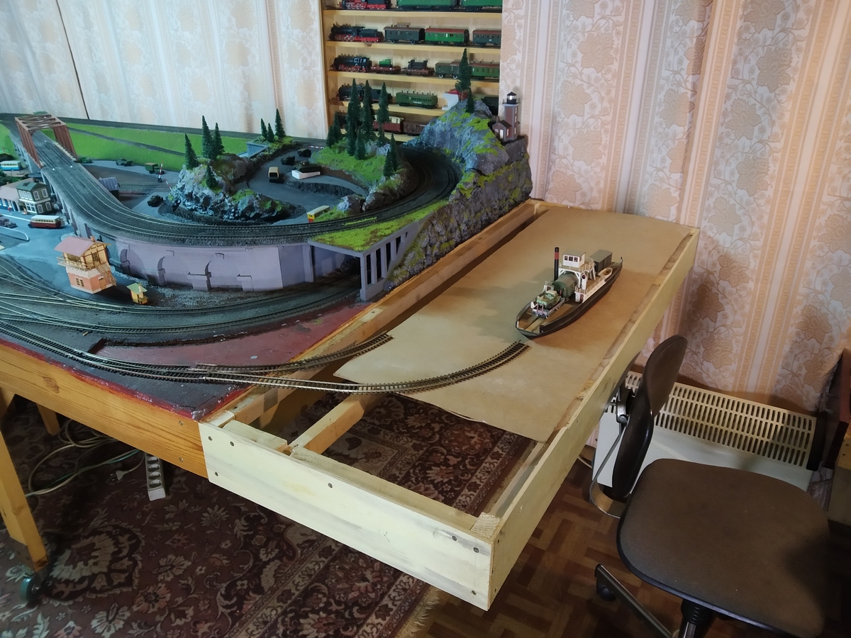 Пока в поиске оптимальной укладки путевого, чтобы осталось достаточно места для отхода парома от рампы.