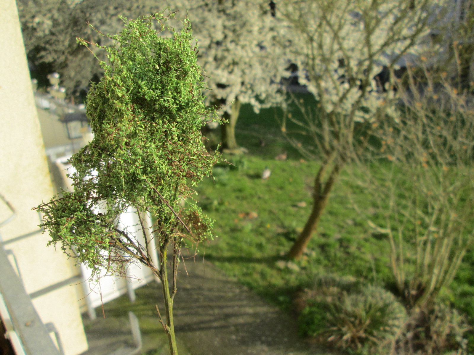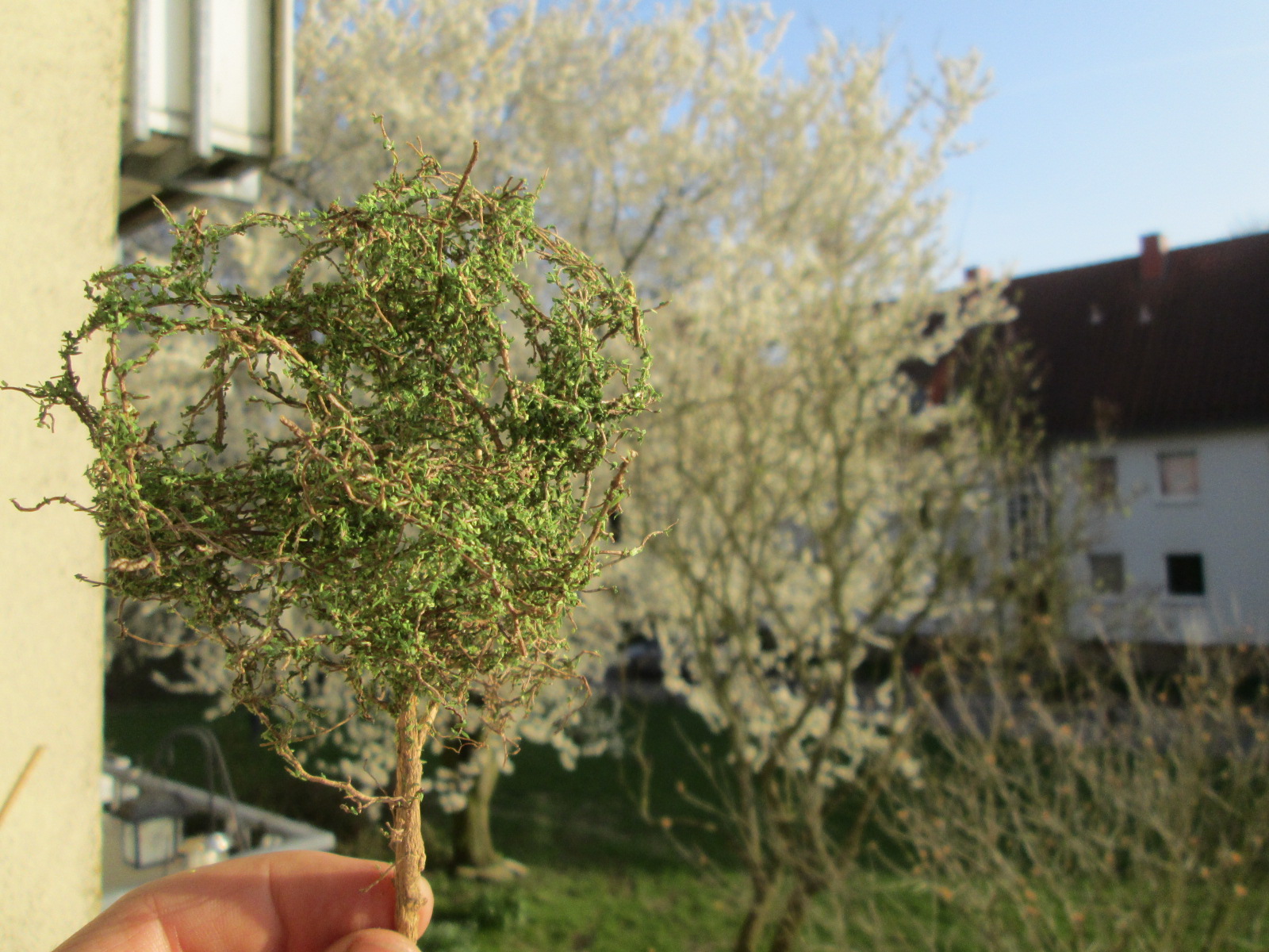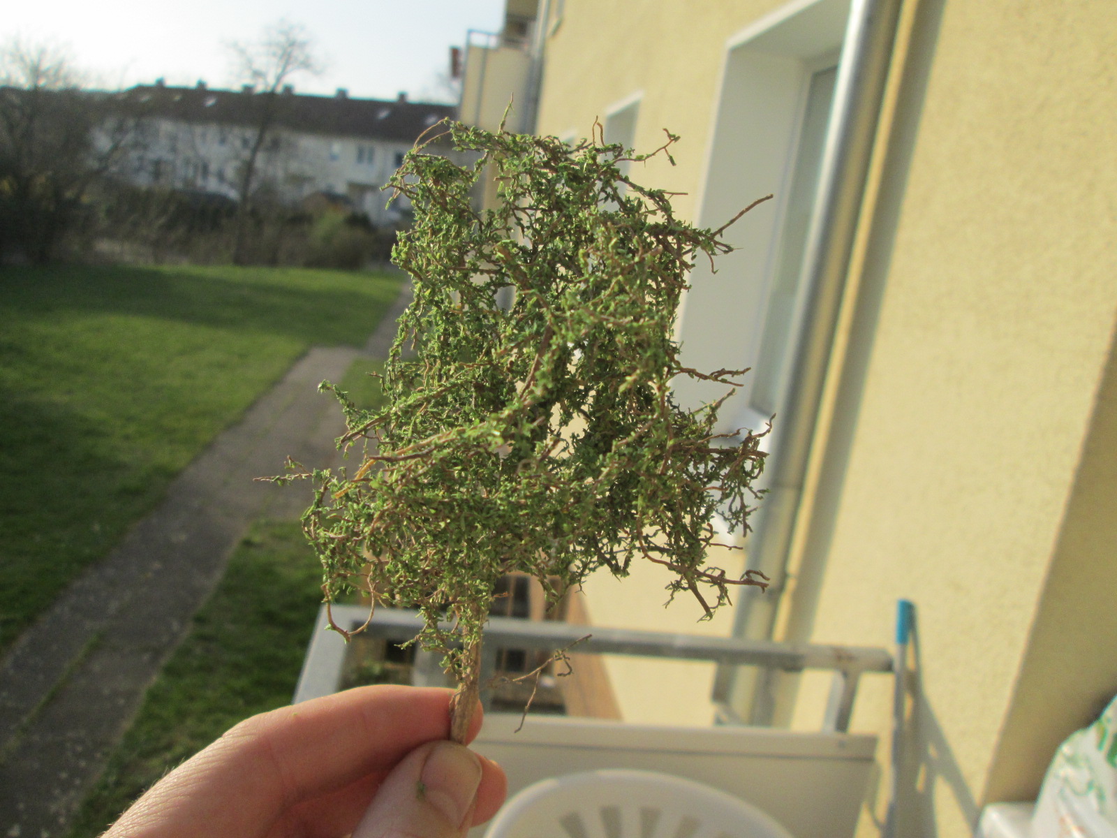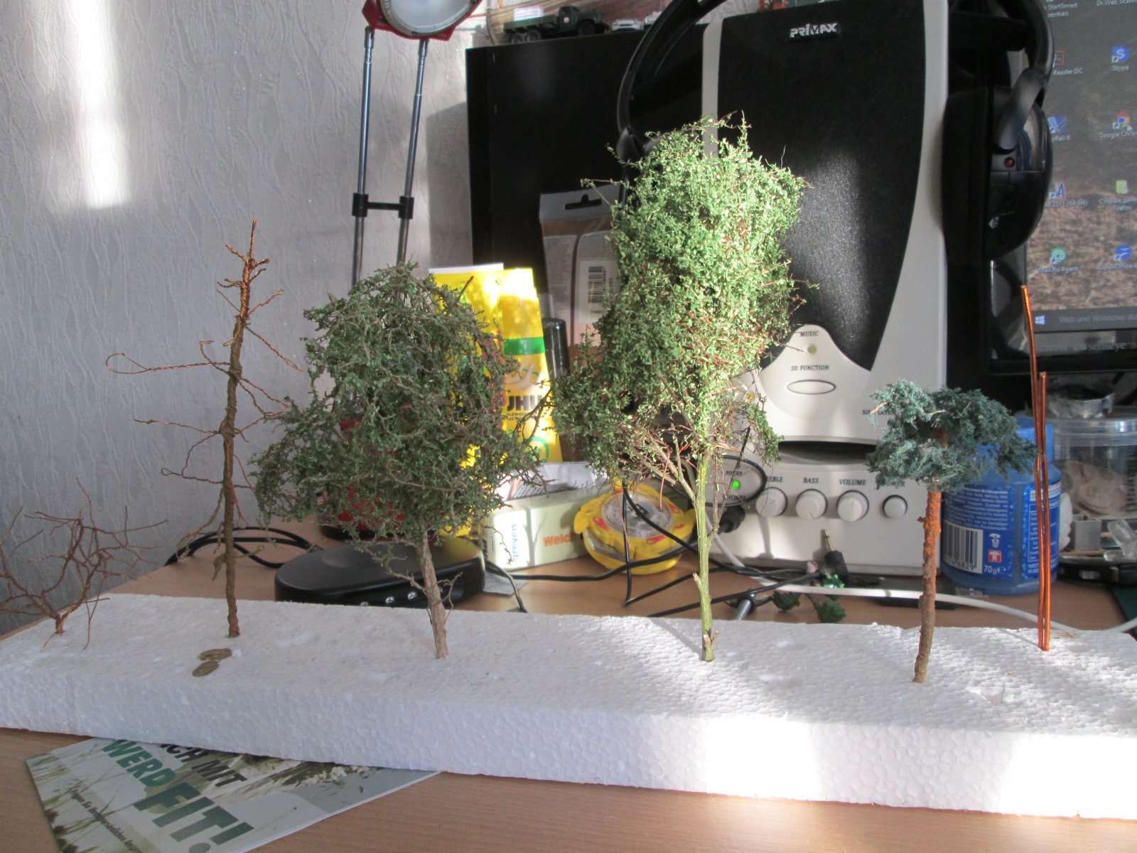 Надо не забыть и скинуть видео. Подписан в ютубе на канал. Производитель разной продукции для создания ландшафта, выкладывает видео, как работать с их продукцией и показывают результат. Там очень хороший был пример, с таким же примерно применением настоящих веток от кустов, травы высокой и деревьев. А дальше по такому же сценарию. Местами объём, дальше опрыскивание клеем и присыпка различными продуктами фирмы, для создания листвы. А по факту выложенных выше фото, производство деревьев налажено и хорошо продвигается. Радует, что меняются способы изготовления. Это вносит разнообразие и добавляет опыт.