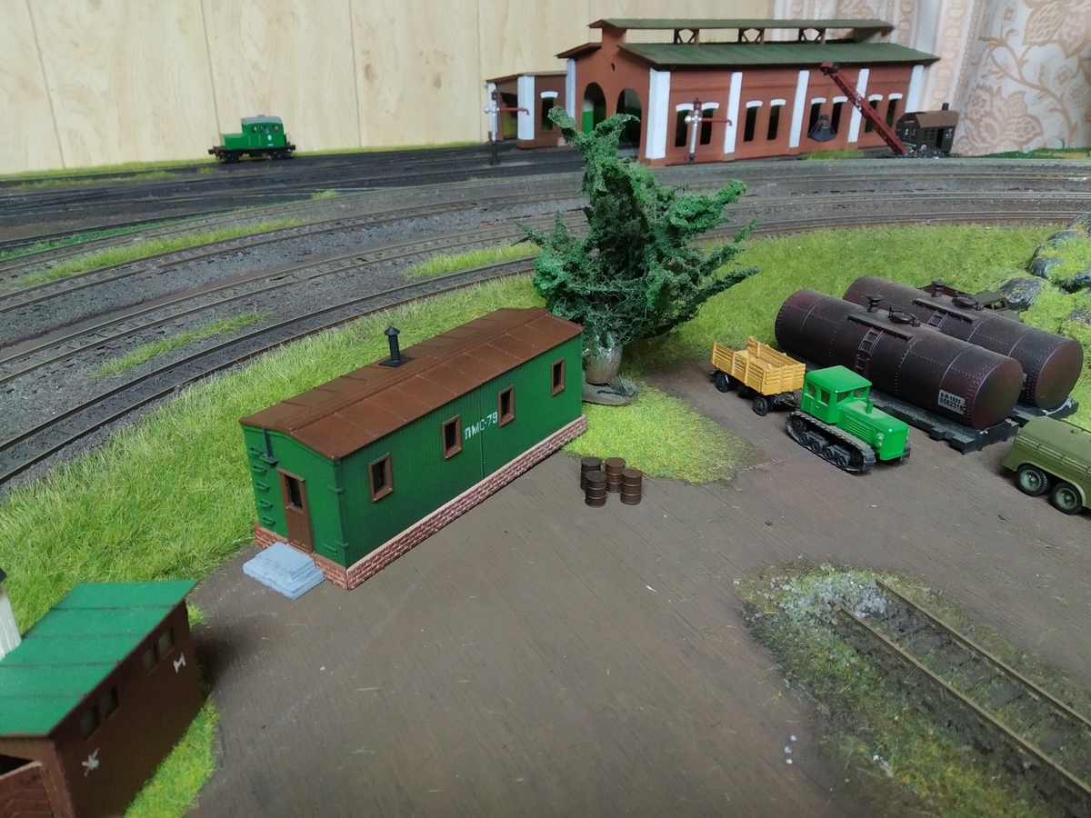 Далее без слов. Как по мне, то общий сюжет территории ПМС теперь выглядит легче. Бытовку можно и нужно дополнить живописной мелочёвкой, но такие работы временно невыполнимы.