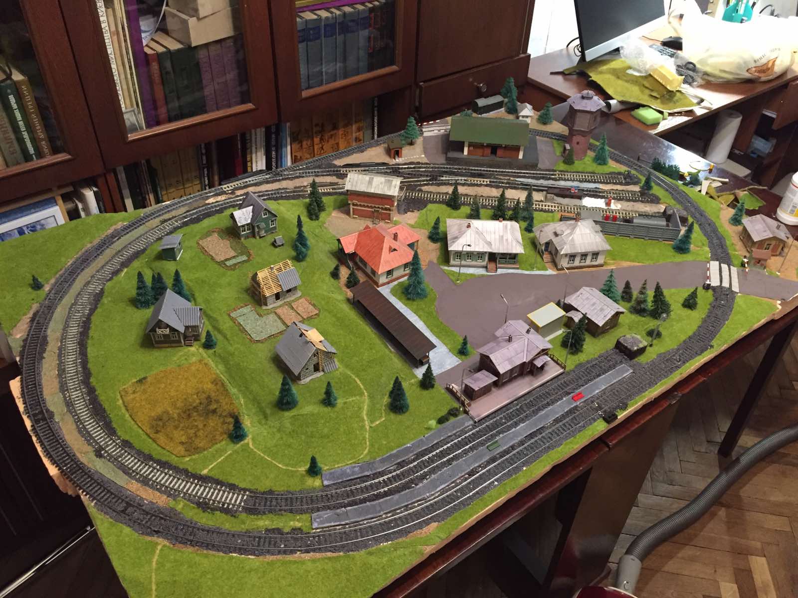 Пока основной вывод, который сделал в процессе переделки - нельзя пихать невпихуемое (с). В том смысле, что нельзя красиво разместить на двух квадратных метрах станции, заводы и депо. Сюжет макета надо выбирать исходя из реалий.
