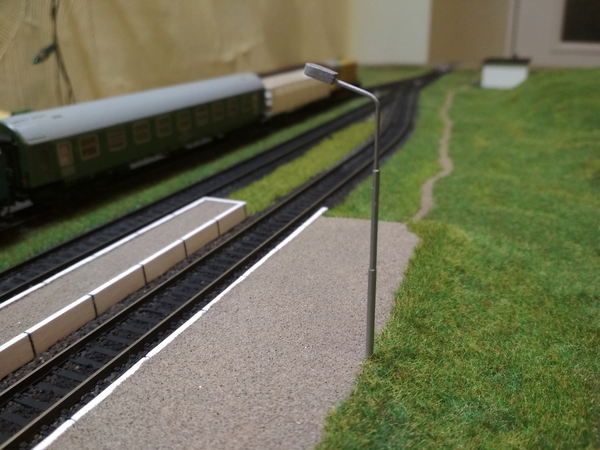 Запиляв перший перон, засадив трави, проба пера - освітлювальний стовп. Трубки 1.5, 1.0 та 0.8 мм, текстоліт, світлодіод 0603 і паяльник. На макро якось не так виглядає, як в живу. В натурі дуже ажурно вийшло. Принаймі краще, ніж кітаса пропонують.