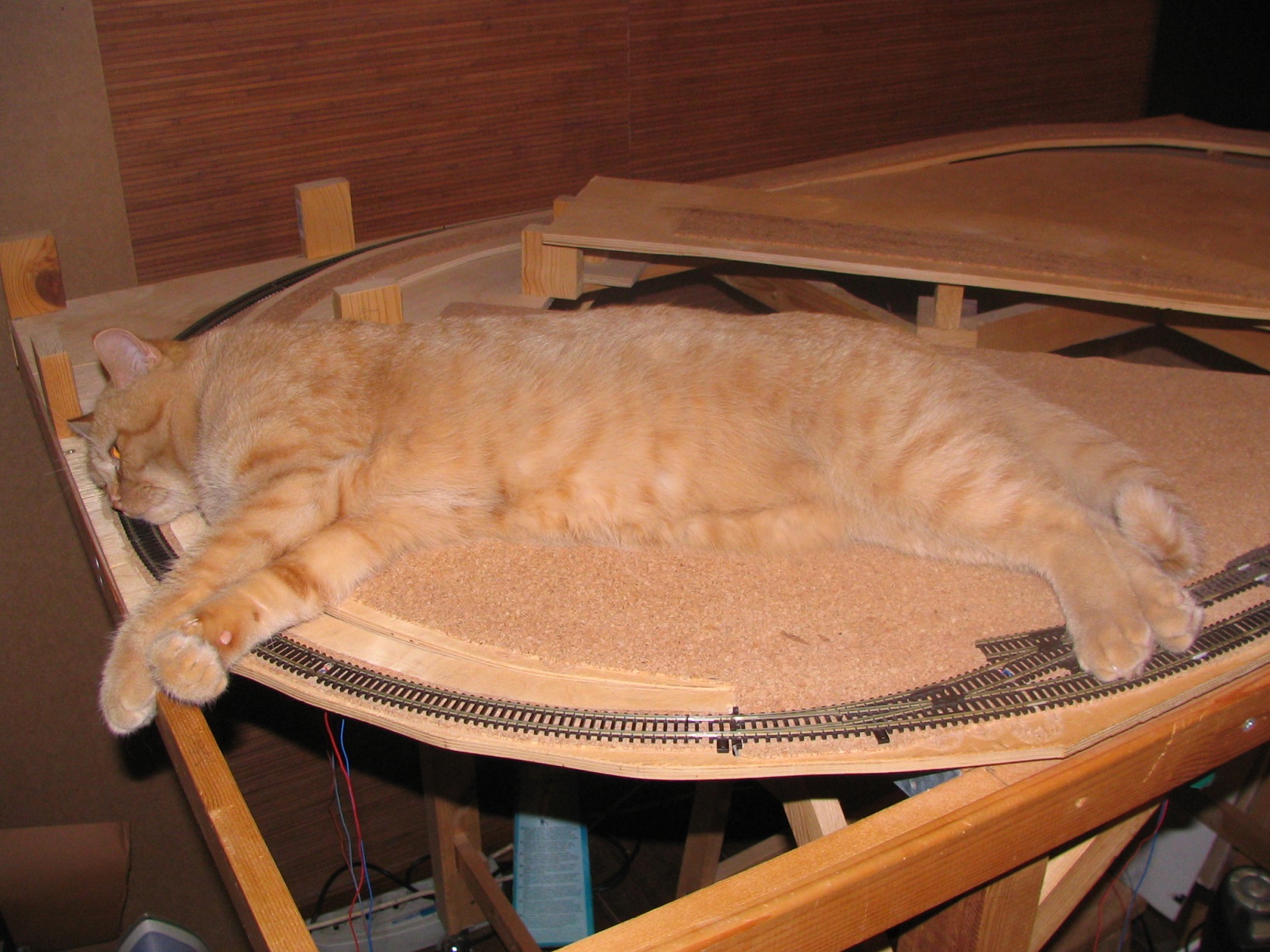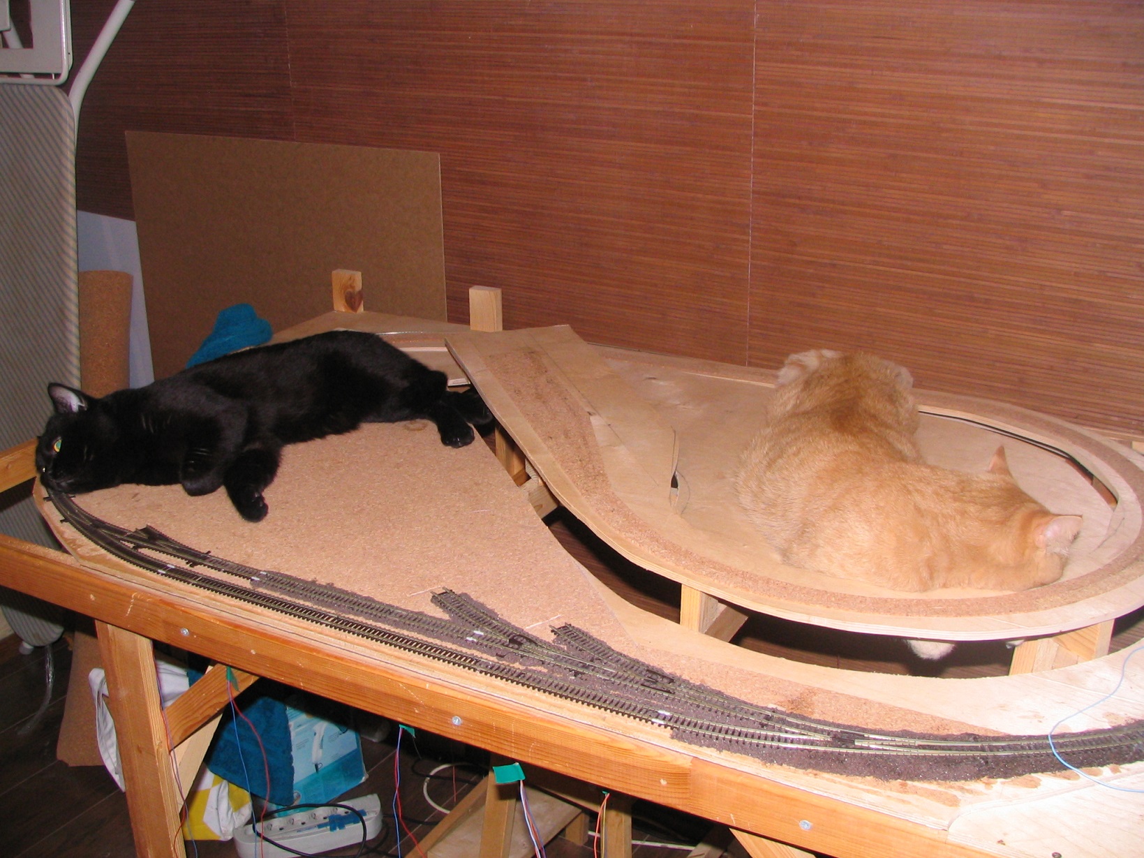 Как-то совсем упустил из виду, что после теста Д-2 на макете остался вполне работоспособный участок путевого. Брошена только одноколейка, но основной принцип выдержан и можно проверить хотя бы пригодность к эксплуатации выбранных уклонов. Но вообще-то к этому вопросу подошёл весьма аккуратно - уклон везде меньше максимально допустимых 4 см на метр, старался делать ближе к 3 см. В радиусах около 2 см на метр.