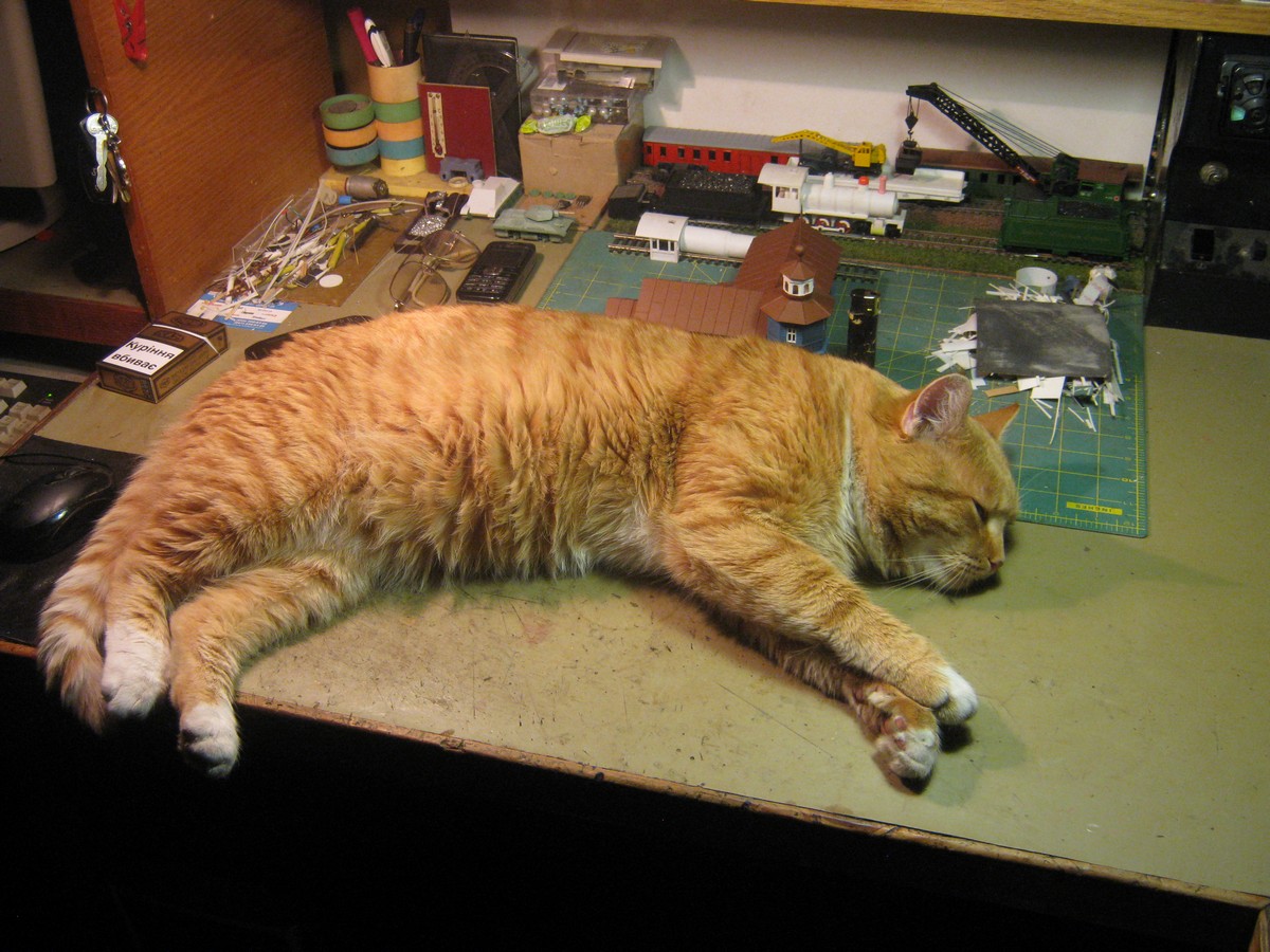 Какие то котэ здоровенные.Не в масштабе что ли...Arseny писав:Мои коты тоже облюбовали стол, правда ходят очень аккуратно. Но вот где они будут спать, когда появятся деревья и шахта?...