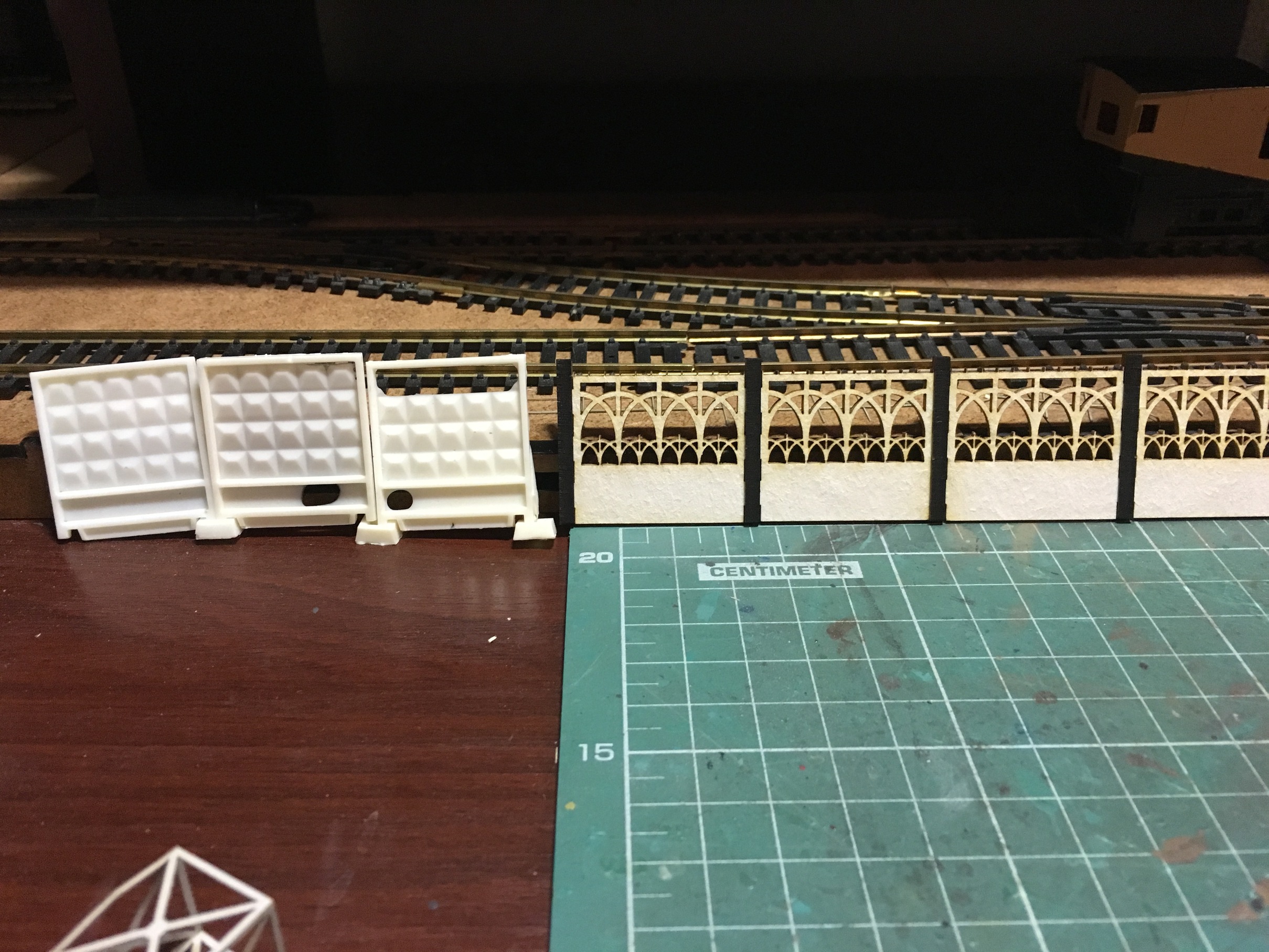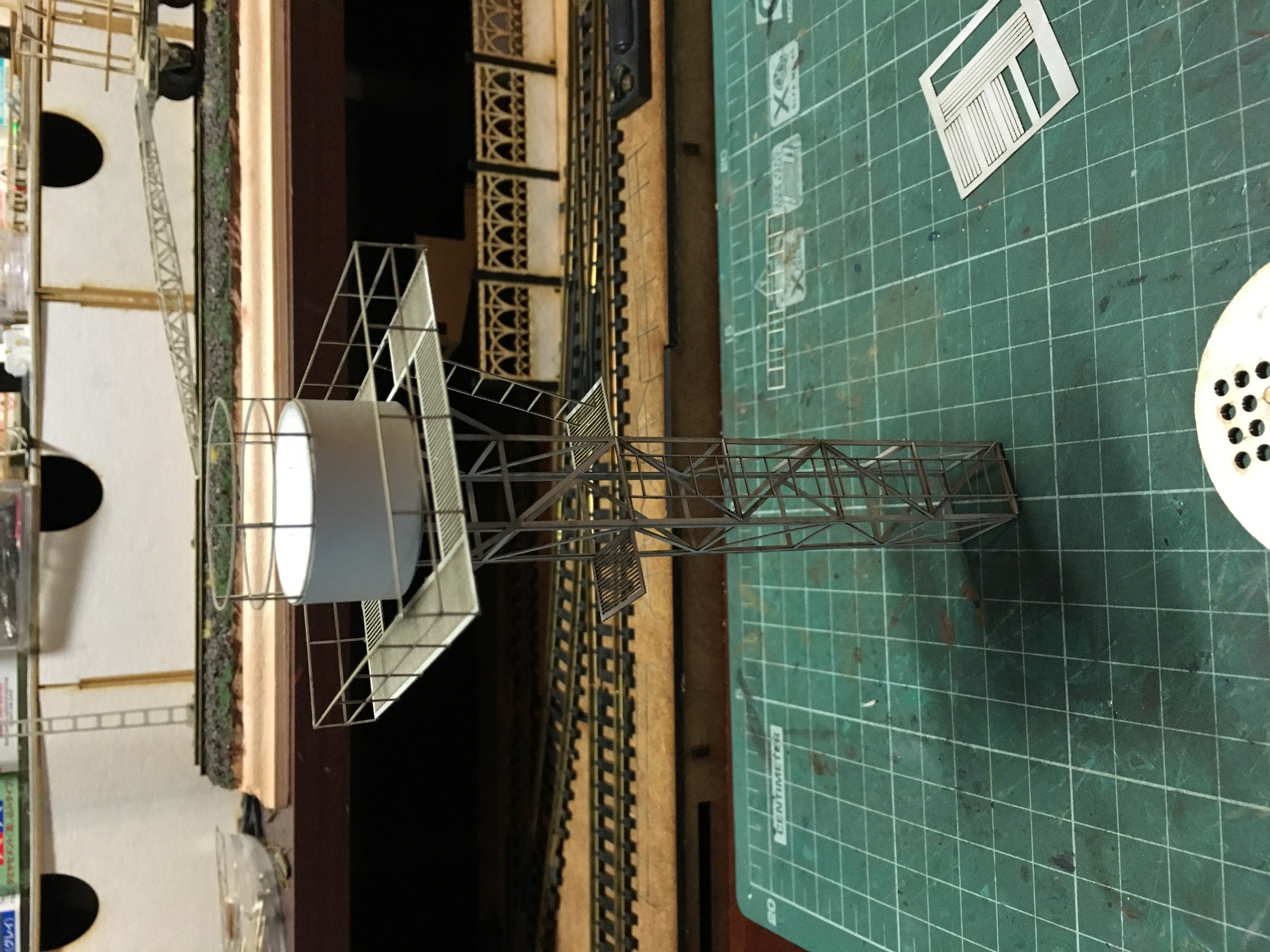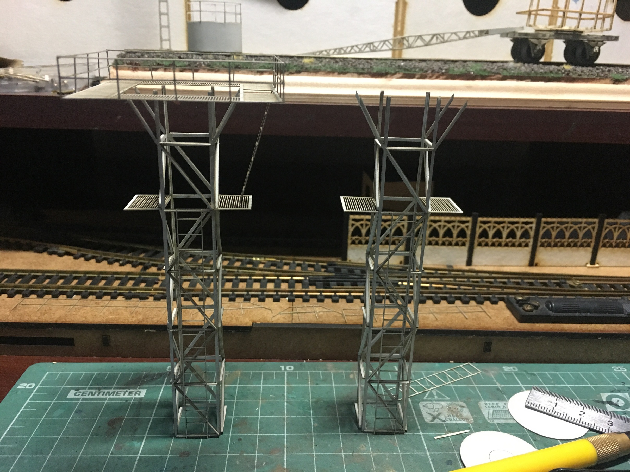 На фотографиях проскочила станционная мачта освещения. Раз уж проскочила, в кратце о ней. На макете будет две мачты. Планируется по крайней мере. Каждая будет освещать свою часть макета, особенно в нишах. По секциям не решил, но скорее всего, справа на один сегмент меньше будет. То есть 4 и 3 секции.