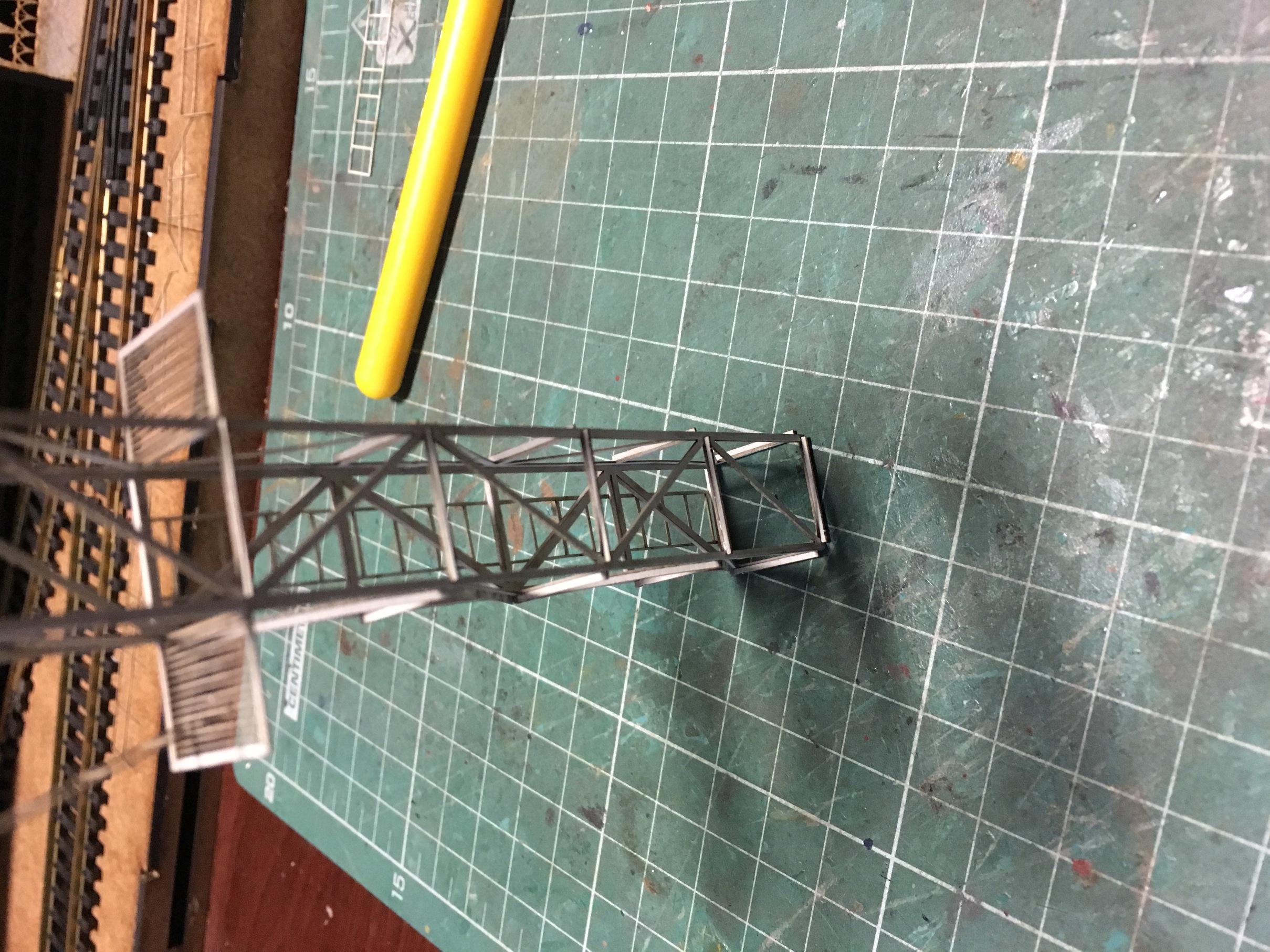 Далее подготовил ригель с опорами. Пущу по нему трубопровод от нефтекачки, как у оригинала. Сам ригель и опоры, сделал на новый лад. Ригель с опорами, собраны в основных деталях. Различных крепежей и мелочей, ещё нет.
