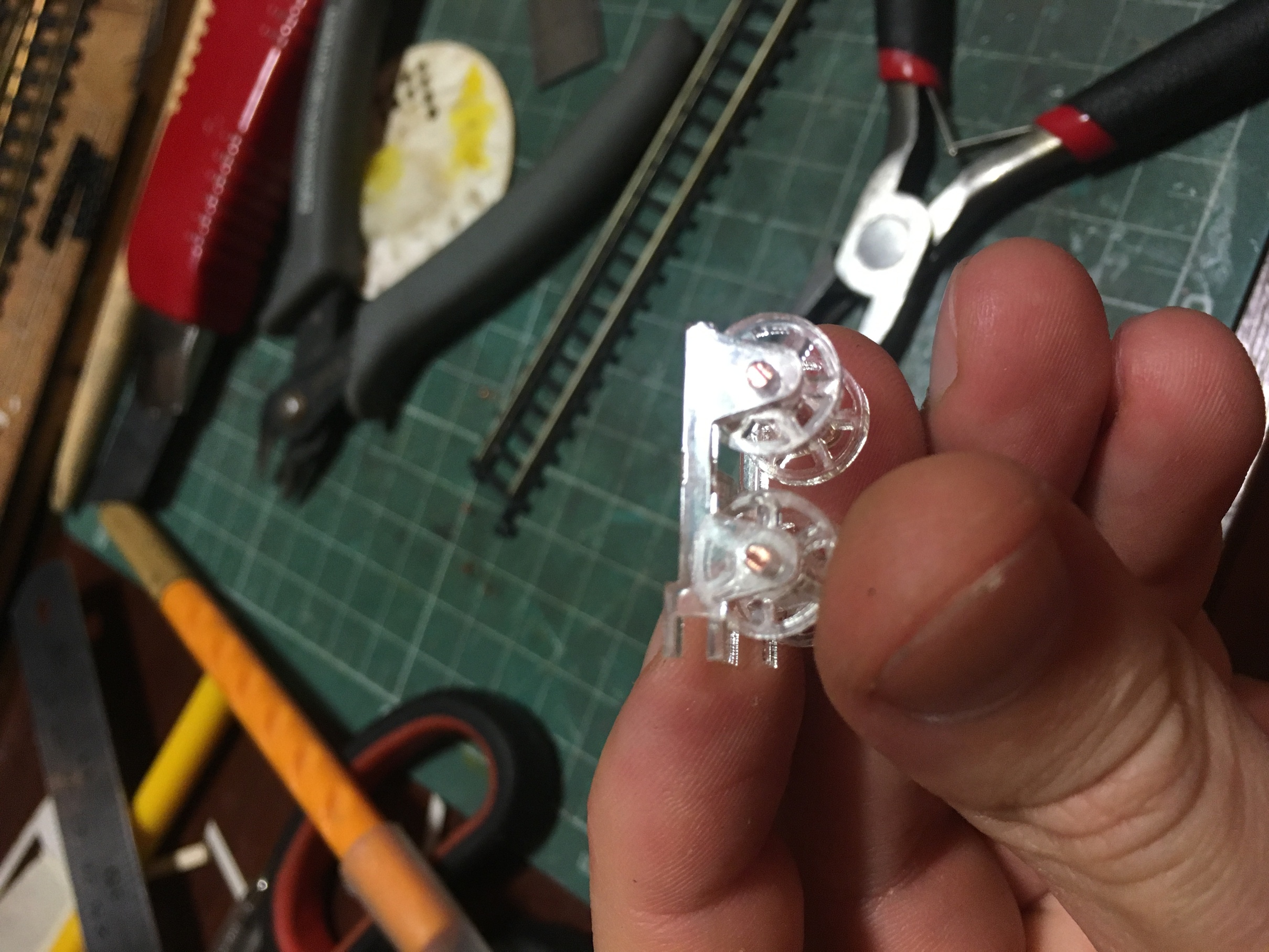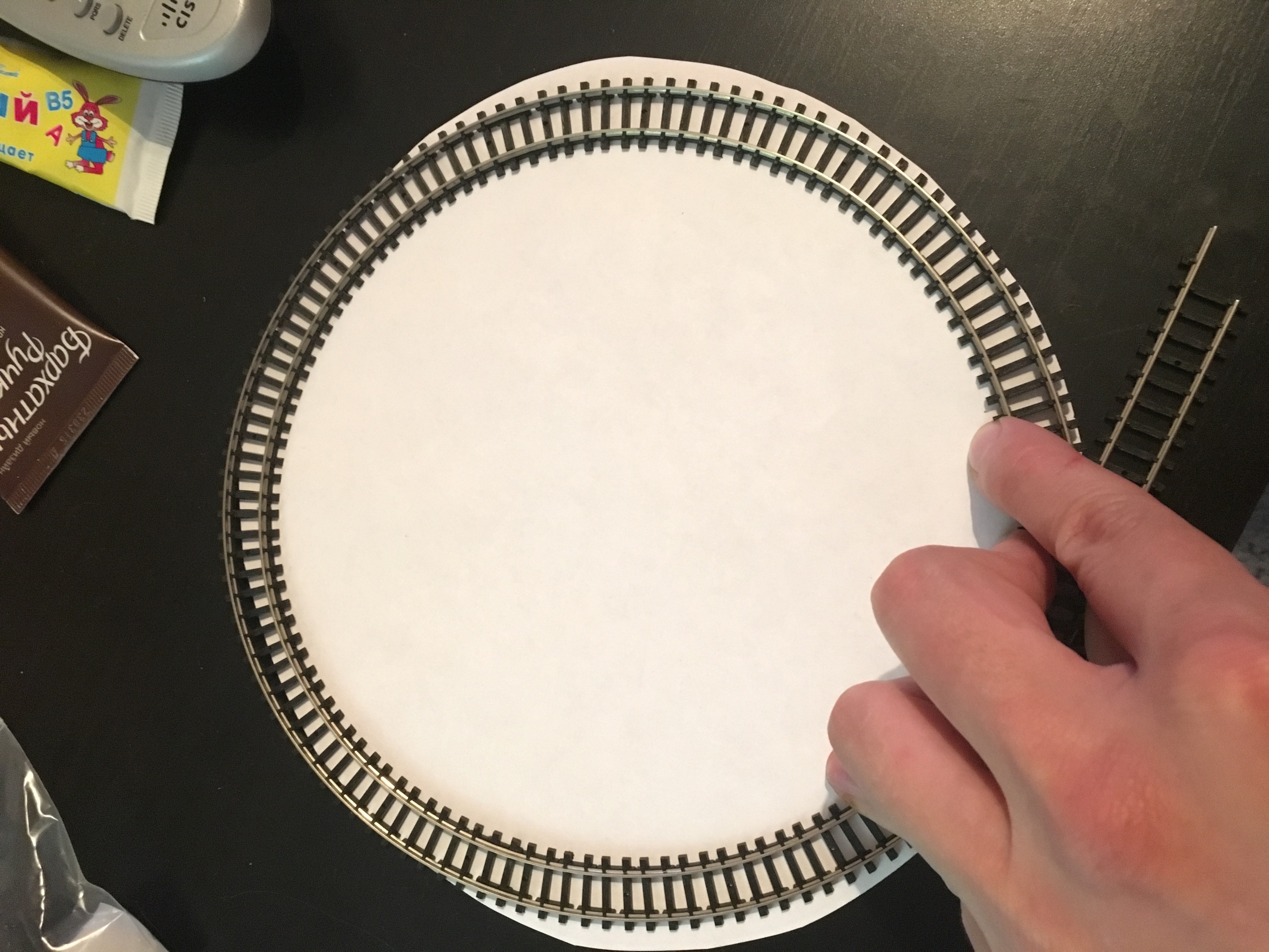 Далее, когда с внешним видом определился, стал думать над реализацией. Дошло уже до того, что рельсы самодельные хотел сделать, необходимого радиуса. Нарезать из пластика, так как передавать ток по ним не планировал. И тут, через меня прошёл очередной заказ с ебей. Помогаю товарищу, приобретать нужное в энке. И среди прочего, был комплект флексов. Я примерил с разрешения и в итоге, так идеально всё скрутилось, что я попросил продать один. Получил в подарок, за что огромное спасибо товарищу. После примерки, стал думать над приводом. В итоге решил, что будет мотор рядом с кругом. А вращение передаваться либо через редуктор, либо через резиновый пасик. В придачу, один хороший мой товарищ, предложил помощь, в интеграции ардуино. Благо, запасы плат у меня имеются. Как итог, сейчас работаем над управлением мотором, чтоб можно было управлять скоростью и обойтись без редуктора практически полностью. Можно было вообще вал от мотора, пристроить к оси круга в случае с ардуино, но высота в 17мм подмакетника, не позволяет установить мотор под кругом. В общем параллельно с работами по мотору, веду строительство круга.