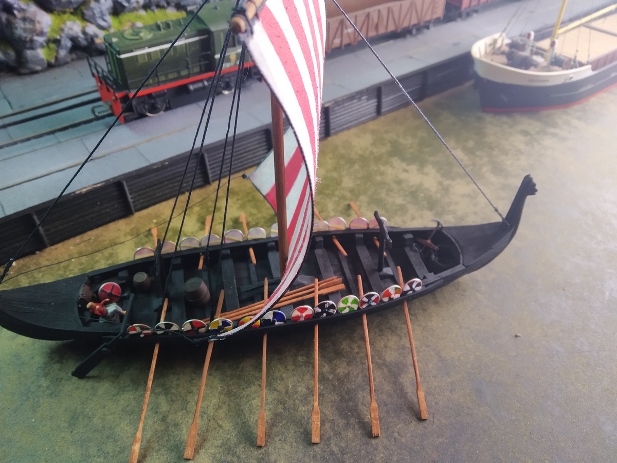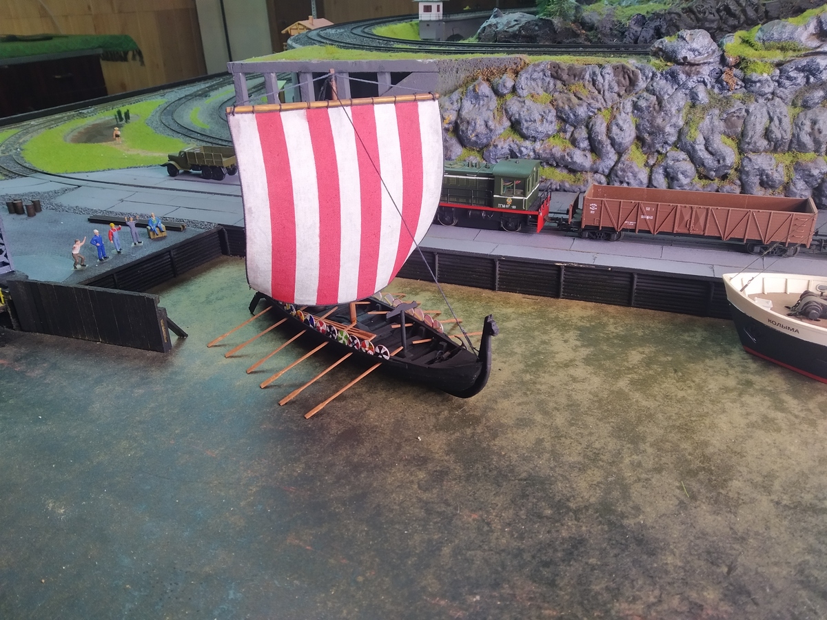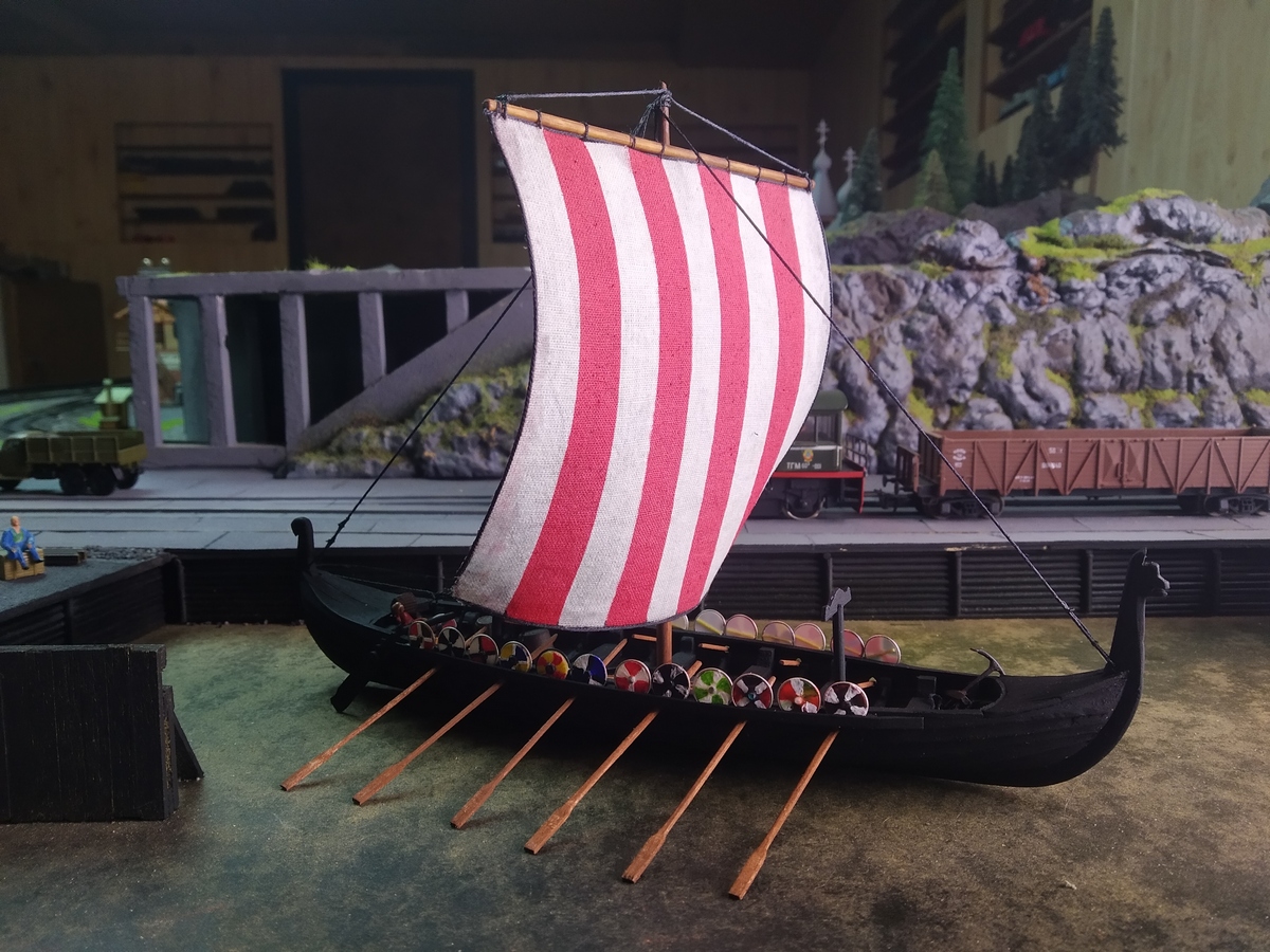 Работы по постройке драккара завершены. Спустили на воду, снарядили и проводили в порт постоянной приписки.