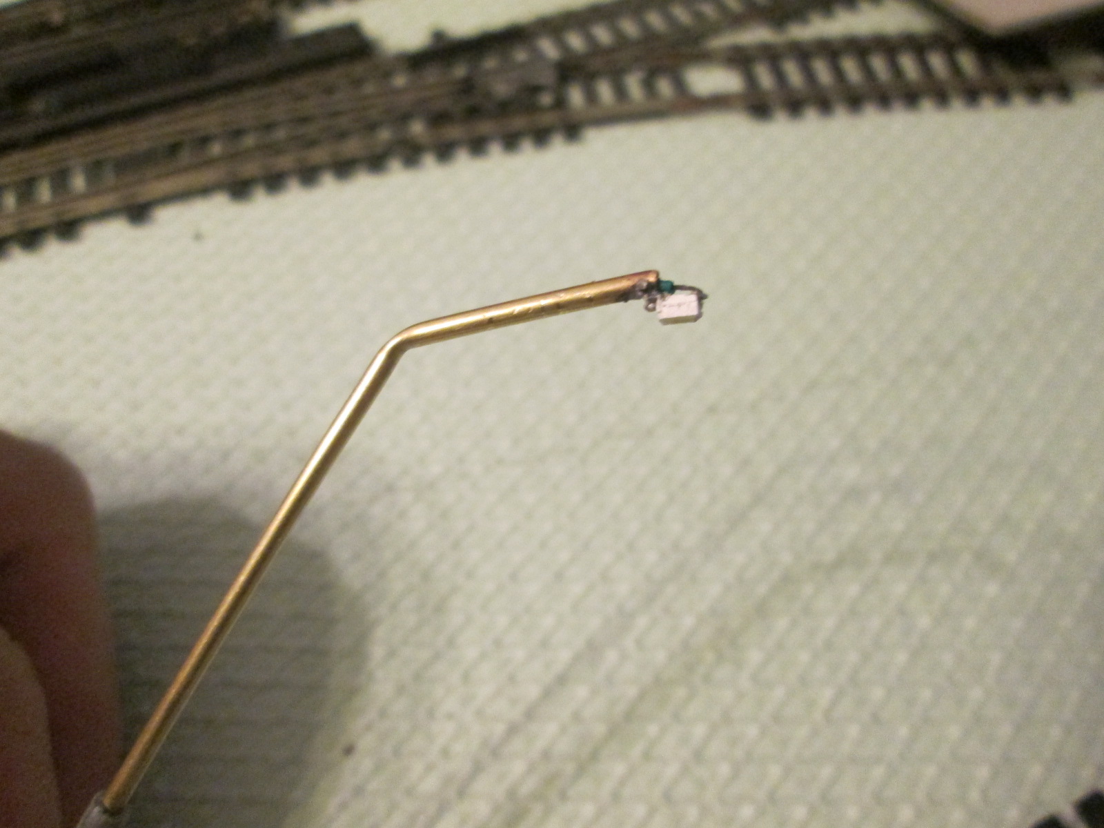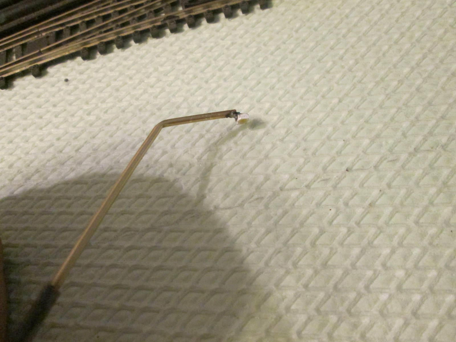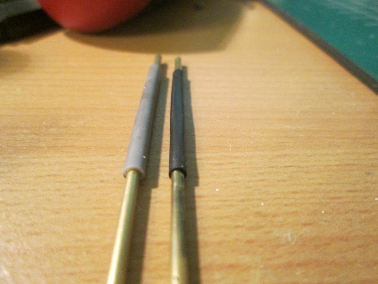 привет всем, пока нет сильно никаких обновлений. но вот вчерась купил себе пару латунных трубочек длиной по 1 м в диаметре 2мм со стенками в 0,3 мм. нарезал на столбики для освещения и задался вопросом из чего сделать утолщенное основание. перебрал все что было под руокй от стержней от ручек и ушных палочек до кембрика от толстых проводов. последнее вроде все шло. но не до конца. разрезал тогда по вдоль и одел, но есть зазор, тогда скрутил его малость и зазора не стало. встал вопрос чем клеить. попробовал клеем Piko. результат ниже