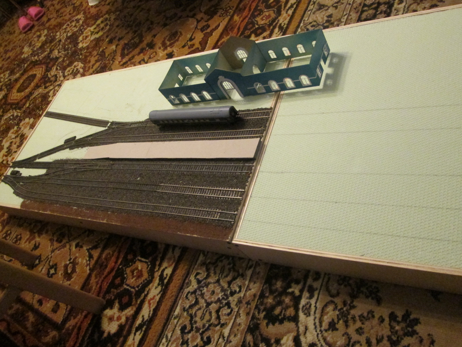 так практически ничего не сделал кроме нового короба, единственное мучает вопрос. в каком месет лучше ставить вокзал. на пересечении модулей или же на край первого модуля. чтобы фиксированным был. простоесли на пересечении, тонадо тогда снимать его при разборке