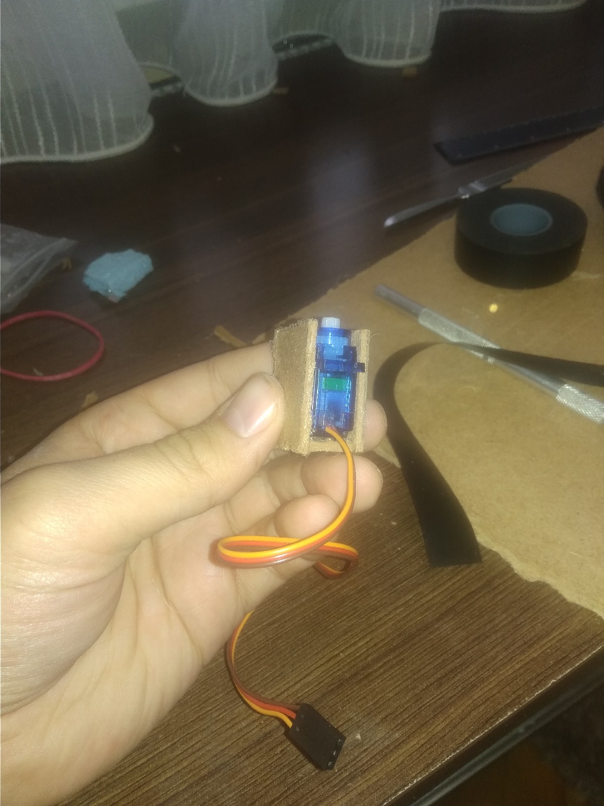 Ось так виглядає гніздо для серви у моєму виконанні. В принципі, такі штуки можна на 3D принтері друкувати. Сервомотор тримається завдяки щільності посадки, якщо є люфт - підіпхати катронку та й усе