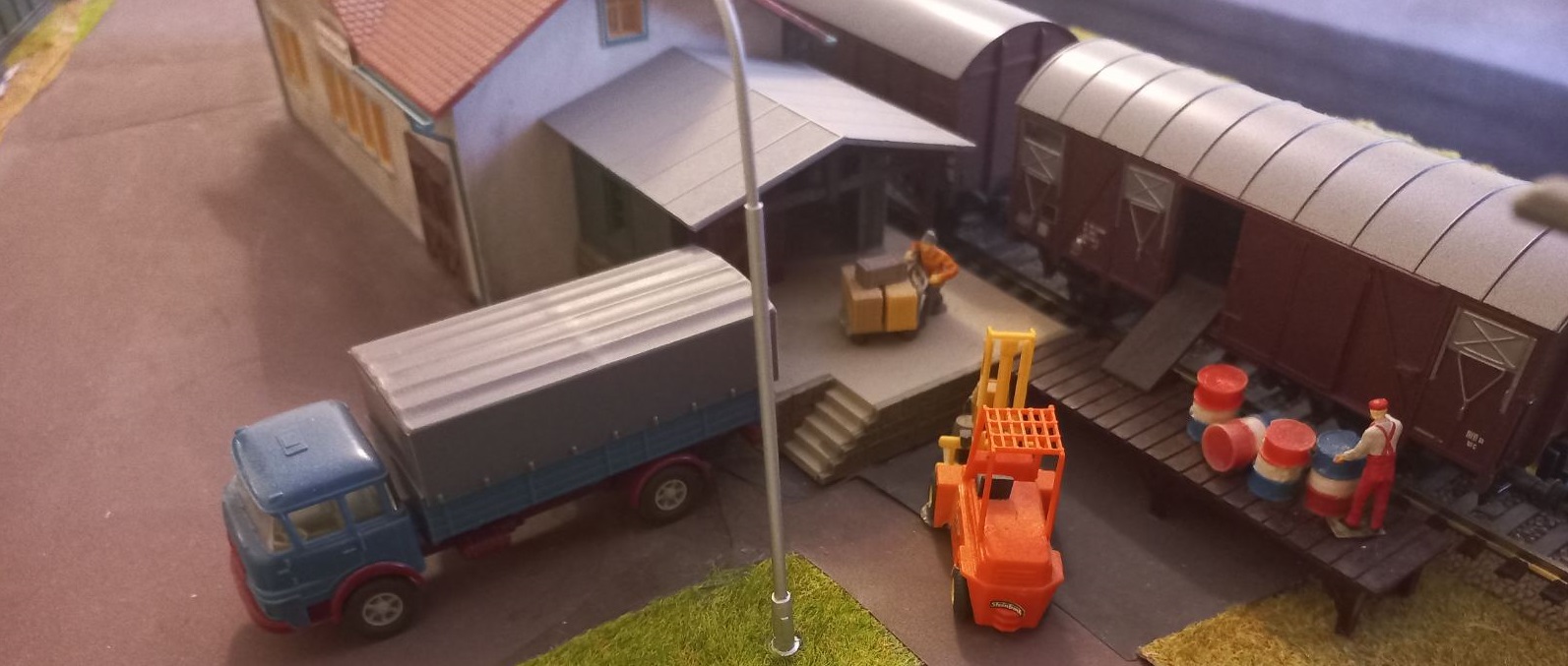 Также начал понемногу населять макет. Есть некоторое волнение - насколько живучей окажется мелочевка с учетом тягания макета туда-сюда... практика покажет. В любом случае, хочется "оживить" его сценками.