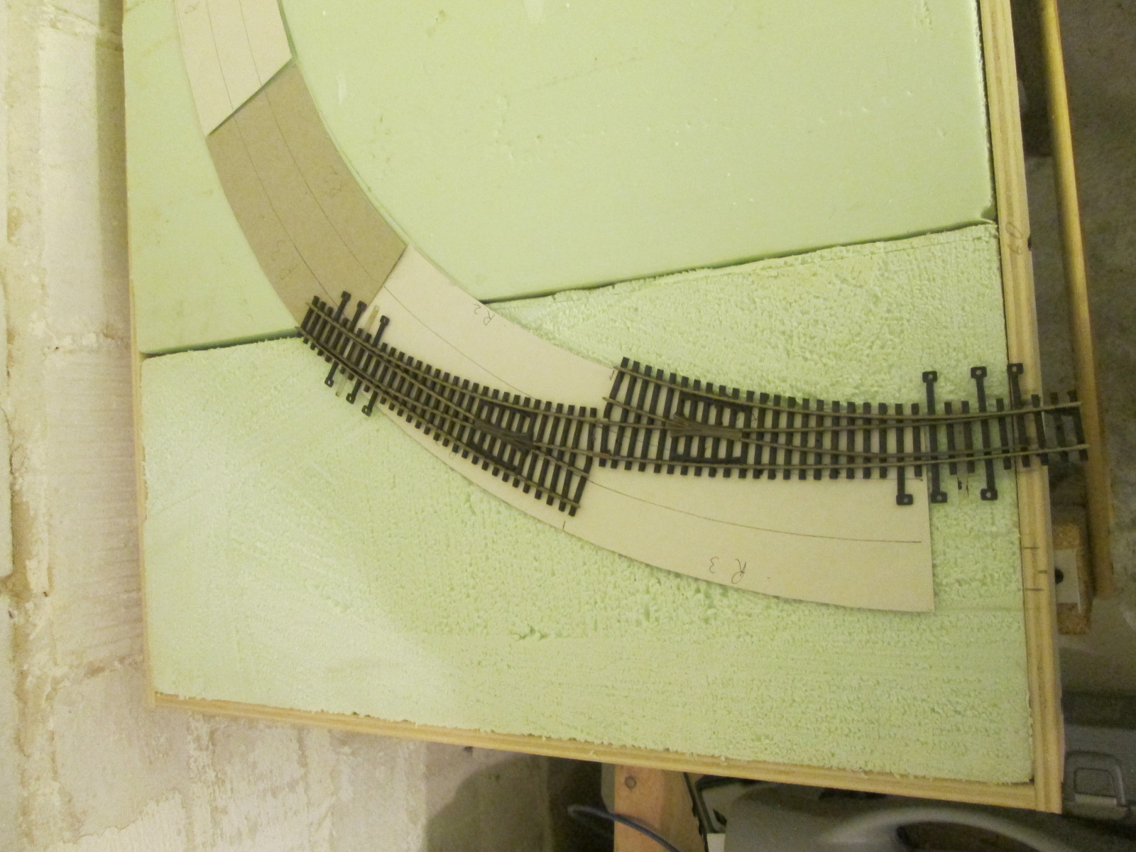 Флексами выложил первые полукруги от этих стрелок отказался на данном участке, так как радиус выходит больше расчетного. есть идея использовать данную стрелку на одном модуле где можно будет вывести на тупик, а атм изобразить стройку ветки флексы кончились, осталась пара и тут же заказал еще новый год наступил,что делать? резанул себе картонку под пульт. пока будет тестовая. понравится сделаю уже получше другую. а нет может переведу все на компьютер. понравилось мне управление с компа в клубе местном.