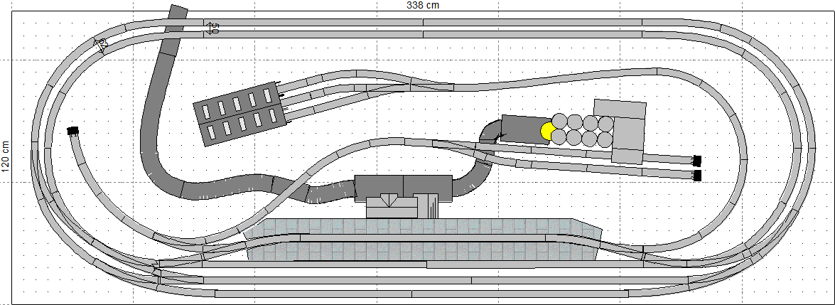 но вот на днях желание появилось поделать, и призадумался опять о переделке макета. осилил SCARM и нарисовал мой нынешний план в целом смотрится мест много еще, но не нравится положение промзоны, если сделать, то между вокзалом и промзоной только дорогу протянуть. в итоге подумал надо перестроить часть. а это убрать часть стрелок и по другому пути переложить. дабы увеличить протяженность путей на вокзале и увеличить малость места. попробую перерисовать новое видение, хотя местами уже много приклеено рельса