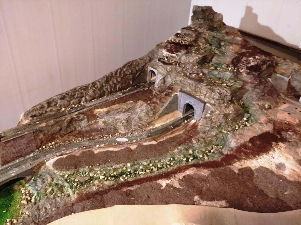 Для постройки ландшафта использовал заливочные формы WoodLand Scenics и свою (DIY): из силикона и природного камня (с личного сада). Из алебастра отлил лишь небольшие фрагменты скал, всё остальное сделал из папье-маше. При этом сначала обмазывал формы сметаной из ПВА и молотого мела, а сверху доклеивал слои бумагой (всего 6-7 слоев). Кстати, в сметану добавлял или черную, или коричневый пигменты, чтобы меньше красить. После высыхания только тонировал и выветрил. Большой плюс таких форм в том, что их можно легко резать, формировать любую кривизну, клеить как душе угодно.