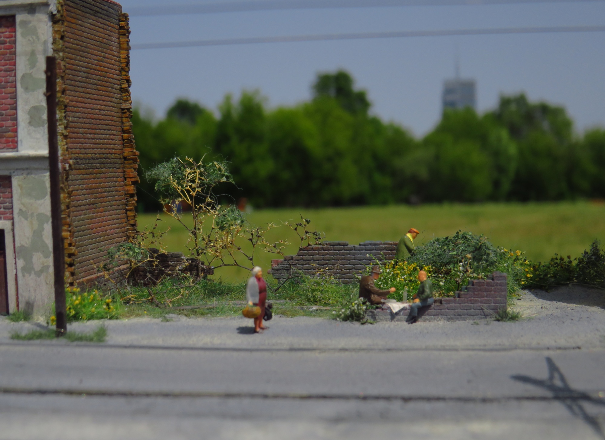 Диорамка просто клас. Знесений будинок-залишки цегли по стіні і куски фундаменту з проросшою травою та бухарики на ній - просто бомба .прям ЯЯЯ ДАСТИШ ФАНТАСТИШ.
