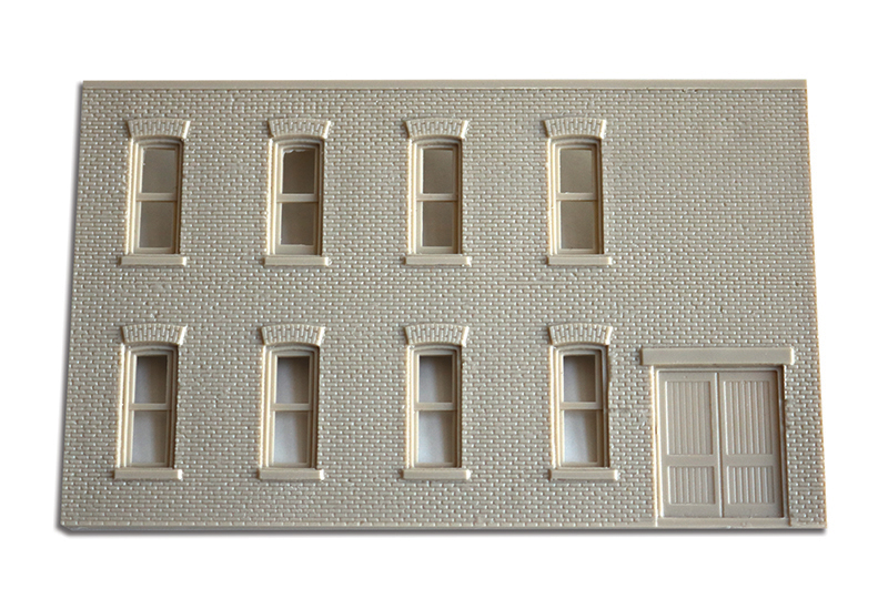 Более интересная задача, и основной вопрос этой статьи - это ситуация, когда набор комплектуется стенами, отлитыми из бежевого или белого пластика, (такими как у Woodland Scenics’ Design Preservation Models). В то время, как фасады моделируемых зданий должны выглядеть сделанными из полированного кирпича с тщательно выполненной отделкой из дерева, простая кирпичная кладка боковых и задних стен требует особого внимания. Здесь моделист может опереться на свои детские воспоминания о том, как он срезал путь по грязным закопченым переулкам, чтобы попасть на станцию, и разнообразные кирпичные здания конца XIX - начала XX века на этой станции.
