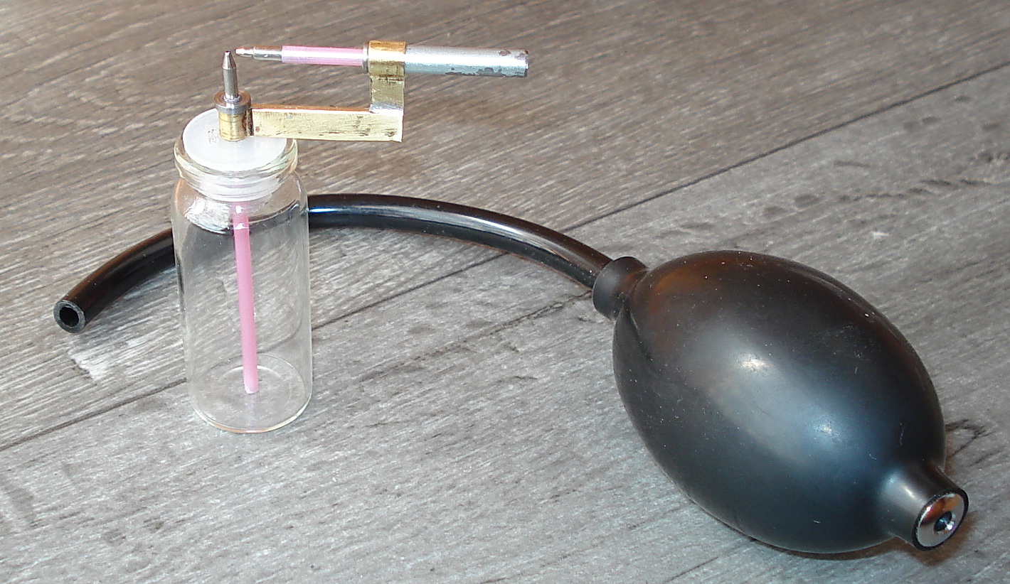 Бюджетный вариант краскопульта.В далёкие годы,этак 89-90 купил я себе краскопульт "Миникроп".Он правда быстро разбился,потому как стеклянный был.И на этом принципе сделал я тогда себе подобную схему краскопульта.Все эти годы красил свои модели только им.Так,что как бюджетный заменитель очень даже ничего и сделать можно на коленке.