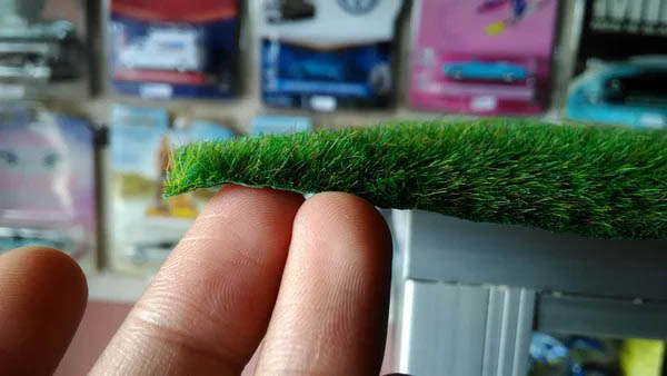 . Да, чуть не забыл. Будьте осторожны с клеем ПВА. Мне попался такой, который при высыхании остался белым и начал очень хорошо просвечивать под флоком. Был отправлен на другие цели и заменён клеем Дракон. Ещё заметил, что чем гуще сыпать флок, тем менее видно его вертикальность. Часть ворсинок падает на уже стоящие ворсинки, путается в них и лежит под разными углами. Ещё на основе разного цвета ковер смотрится по разному. На черной земле даже "весенний луг" темнее, а на темно-желтом темный флок как бы светлеет.