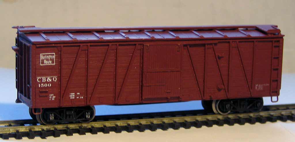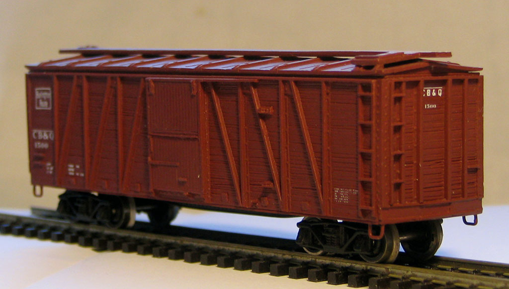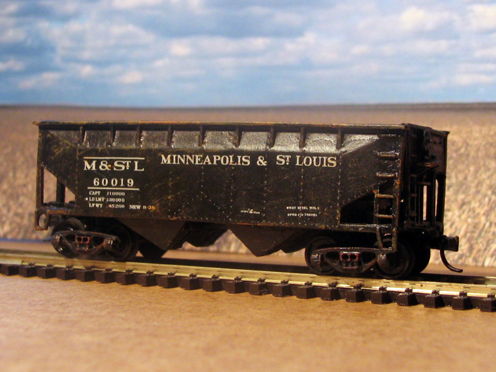 То есть итого на сегодня у меня есть три готовых таких вагона, в окраске железных дорог Canadian Pacific ("мой первоначальный"), Texas&Pacific и Minneapolis&St. Louis. И два несобранных кита.