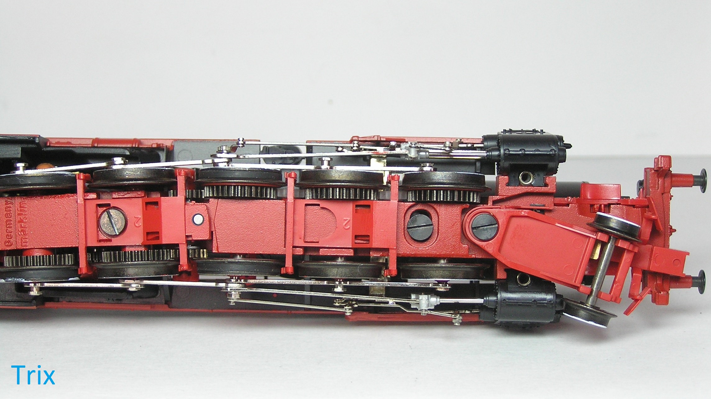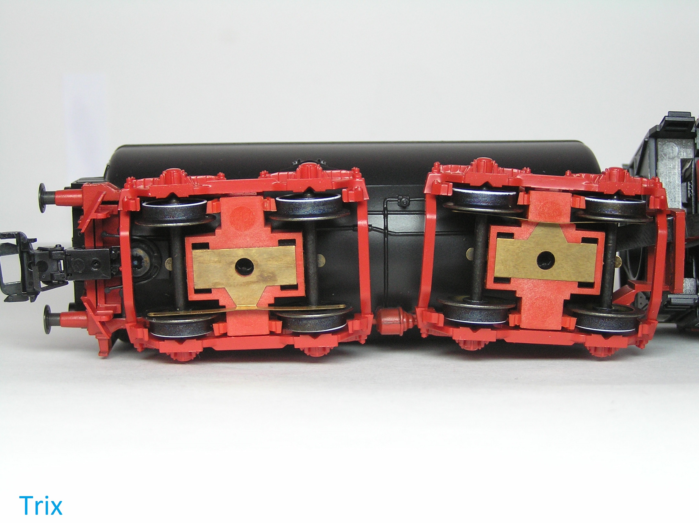 самое большое отличие между Мэрклином и Триксом - это гребни колес , дальше токосъем , на всех поздних моделях Трикс был реализован отдельный токосъем с одной стороны и подсоединялся к месту крепления лыжи