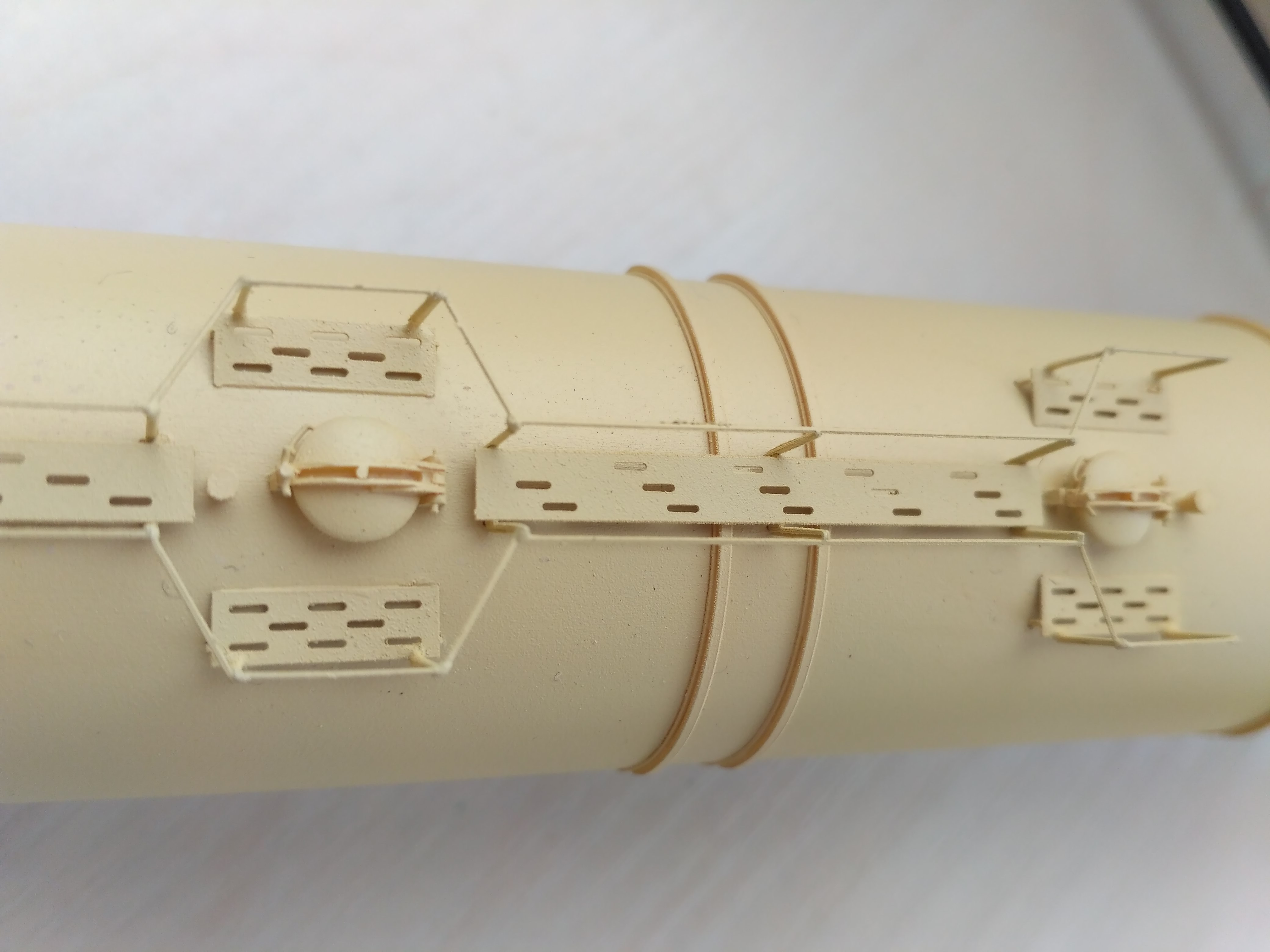 Спасибо , Денис, заметил ! Действительно часто хотелось внести реалистичной игрушечности в модельки. Здесь главный момент - соблюсти параллельность и соосность подвижных деталей. Напомню, что на фото модели травмированные падением полки.Stinky писав:Традиционно уже с подвижными элементами.
