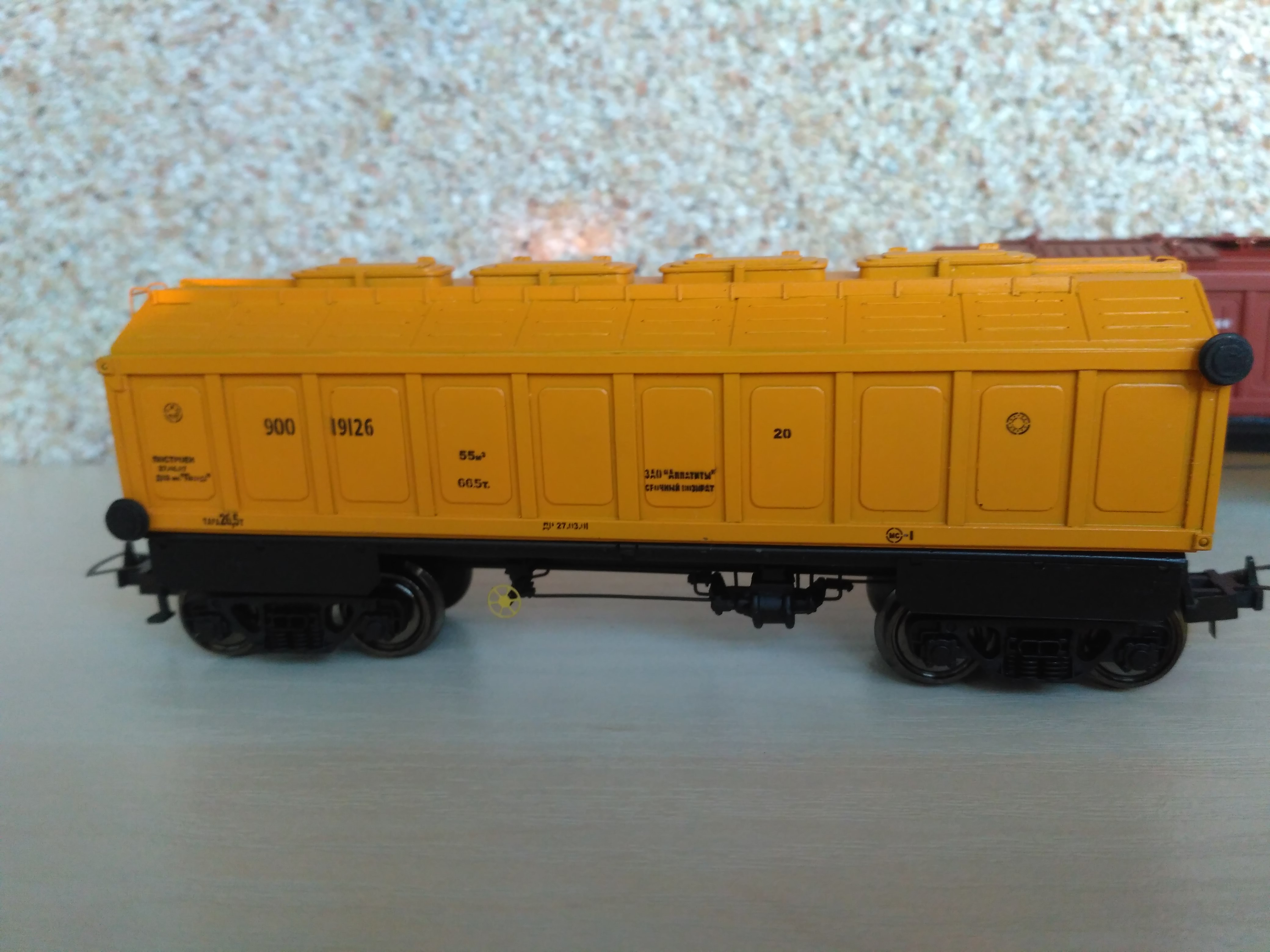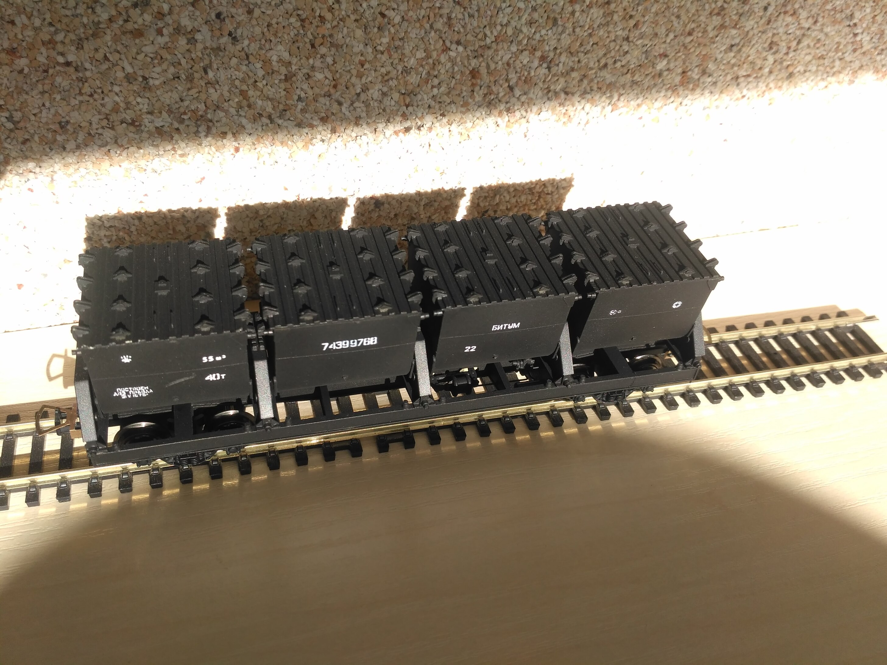 Дальше вышла серия битумников, по иронии судьбы одновременно с "моделой". Вагон остался со следами крушения полки.