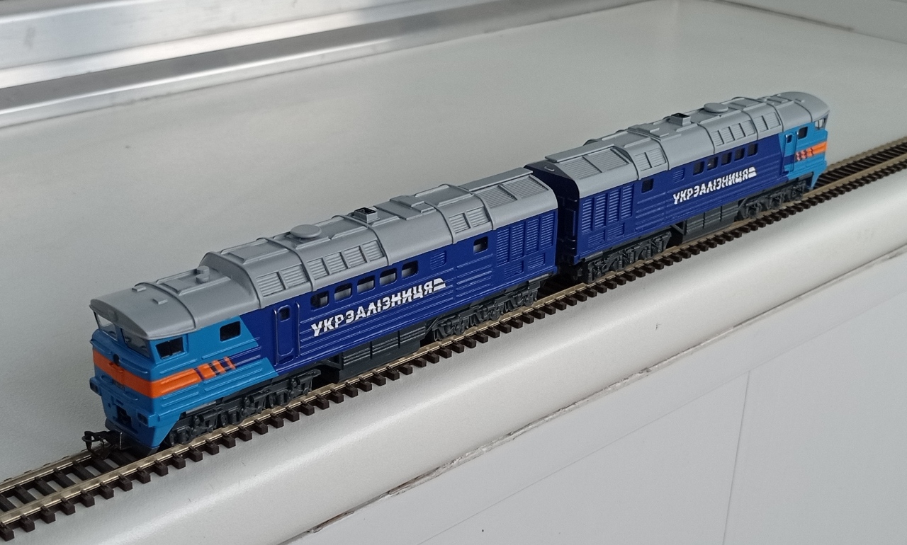 Появилась вторая (приводная) секция 2ТЭ116 в новой раскраске УЗ. В реальности в таком виде попадался мне только номер 823.