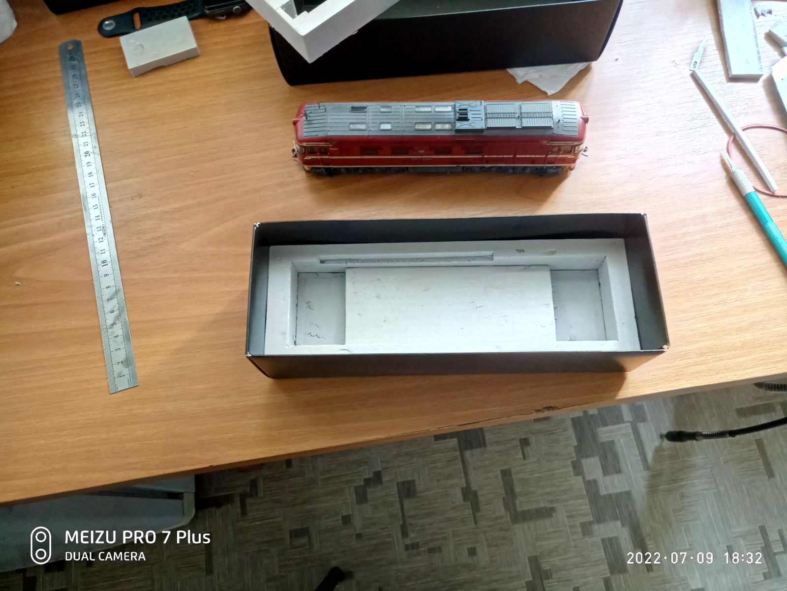 Андрей Солошенко из Харькова сделал для своего ТЭП60 коробку, причём весьма круто и солидно. Я уже сам задумался, что надо как-то нормально поделать упаковки и на свои самоделки, чтобы не переживать насчёт хранения вне полки и транспортировки...