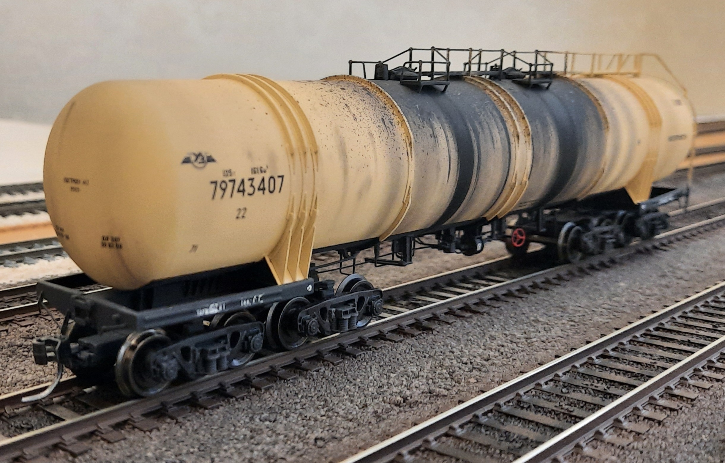 Прототип на фото скорее имеет некоторый глянец, чем матовый (имею ввиду основу цистерны, без загрязнений). Любопытно, что практически все, воссоздавая образ, стремятся уйти в матовый оттенок, а как насчёт такого полуглянца? Понимаю, что наверняка есть свои резоны для безраздельного господства в использовании матового лака, но интересен именно комментарий.