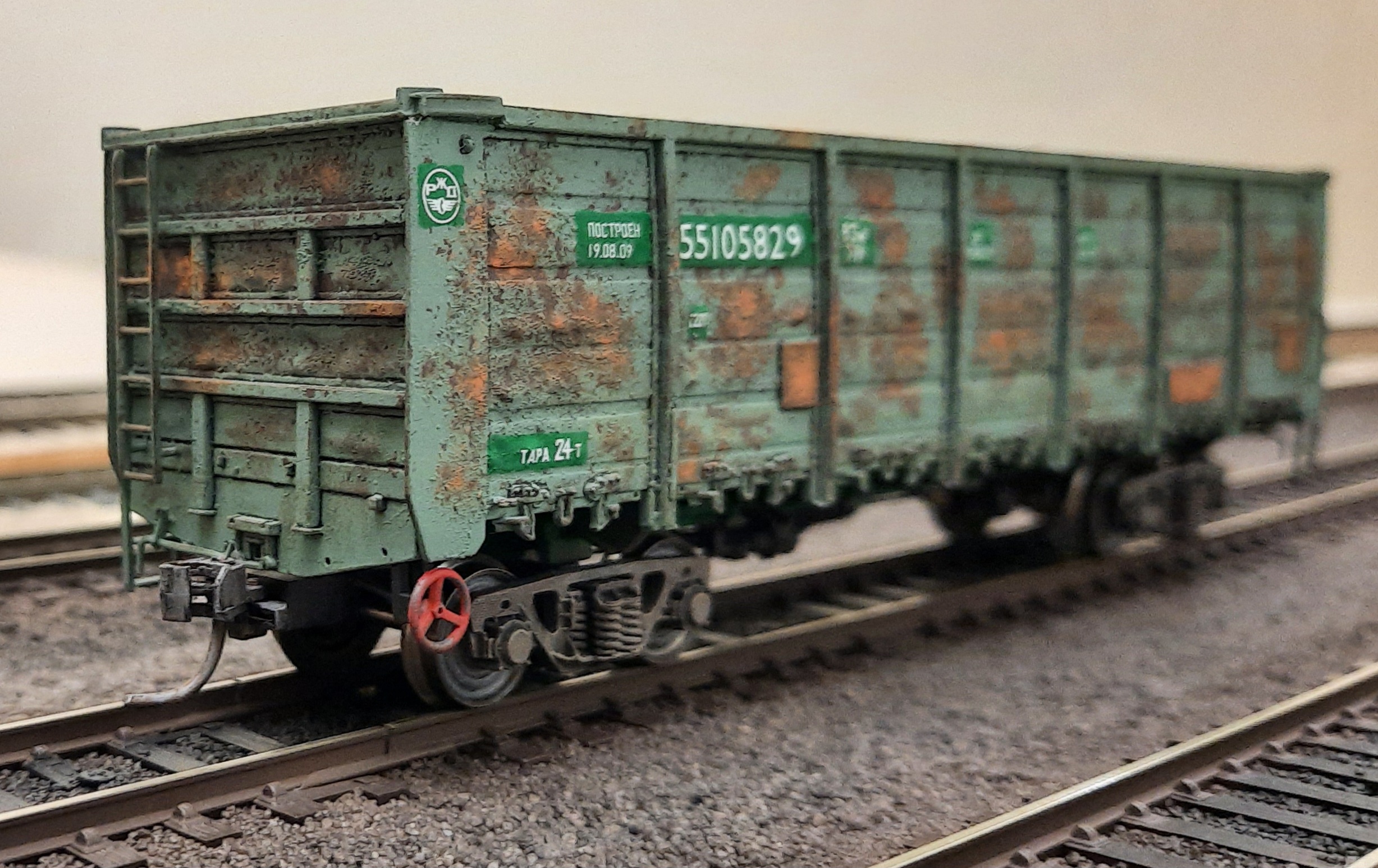Трішки допрацював свій полувагон, який робив у 2020 році: додав різних відтінків іржі, щоб вона не була всюди однаковою.