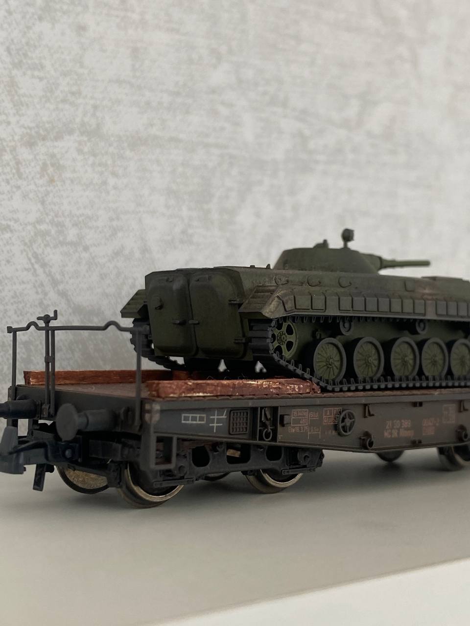 Ворожий «новотранс» перетворений в УЗшний вугільник заграв новими барвами після допрацювання маслянкою та Tamiya-вським “Hull red” кольором, саме червоний корабельний дає гарну червону іржу, а чорна маслянка створює гру відтінків на моделі.