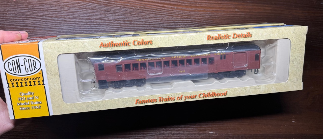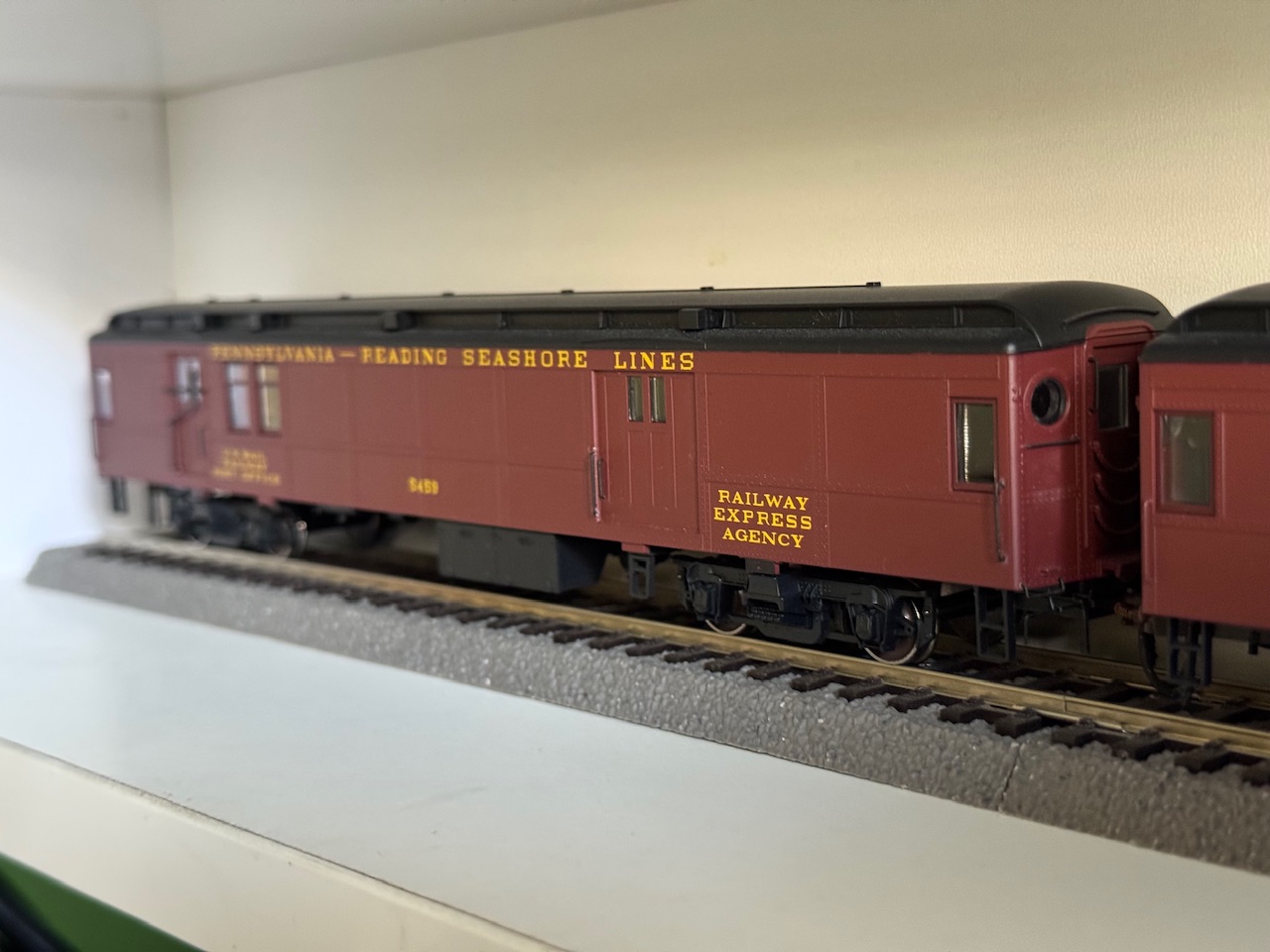 Вагони повністю повторюють ліврею PRR, причому є як довоєнна версія лівреї (коричневий дах в колір з корпусом) так і післявоєнна - чорний дах та коричневий корпус, ніяких інших написів на цих вагонах по фото я не знайшов, але підвагонка там досить не погана)