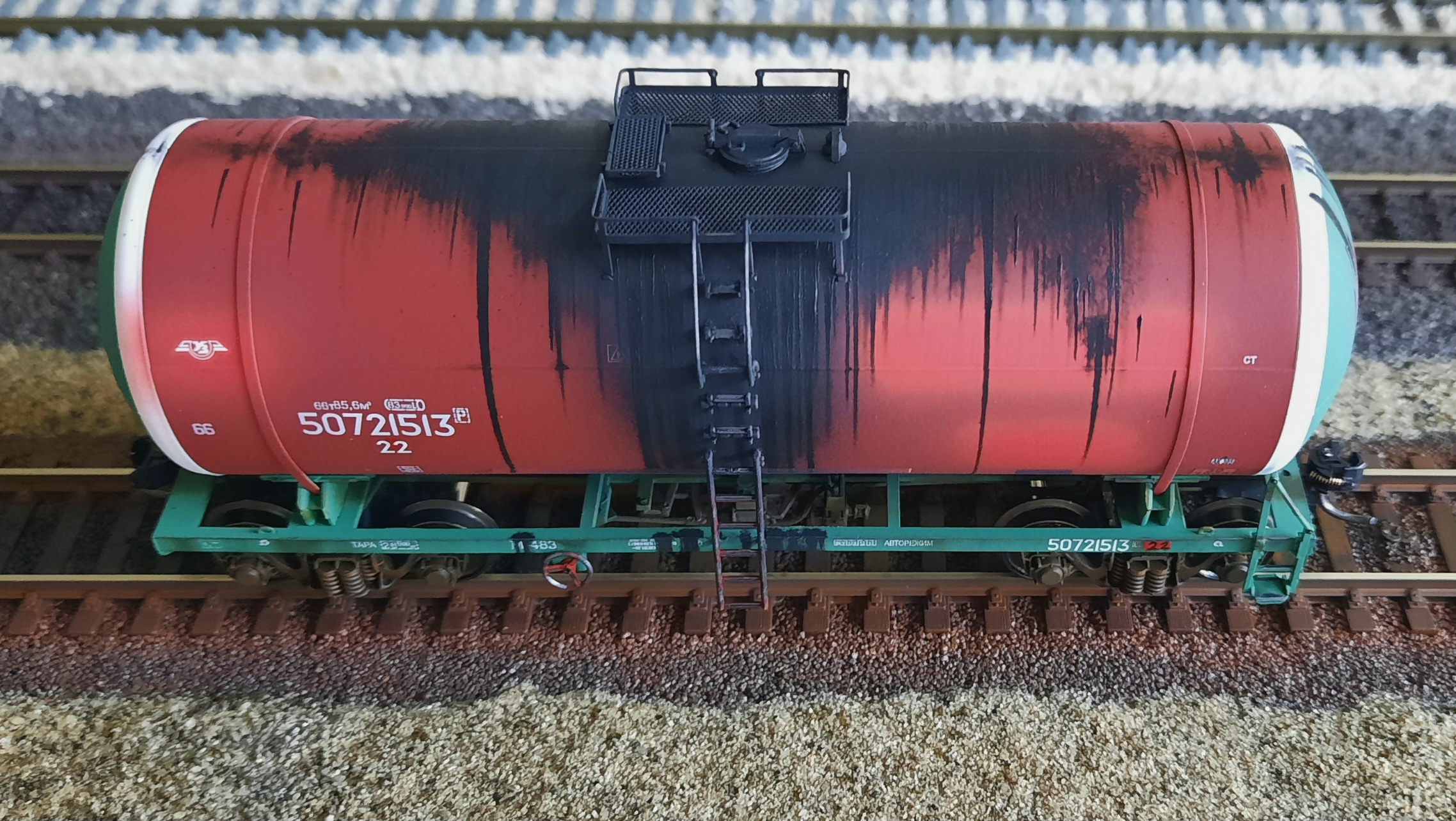 Під цей вагон тепер доведеться зістарити колії, підсадити трави та розкидати сміття на промзоні, бо на відносно нових рейках не виглядає...