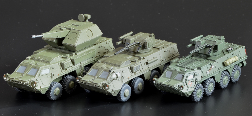 Перші чотири (M2A1 Medium Tank, M3 Lee Grant, M5A3 Stuart light tank та Sherman M4A2) - кіти танків США 30х-40х років минулого століття виробництва Alsa Cast. Кіти в цілому доволі якісні, з досить непаганим деталюванням. Але завдяки мінімалістичній упаковці (картонна коробка та поліетіленовий пакет) при транспортуванні повідламувались деякі мілкі деталі. П'ятий - кіт танку М48 виробництва Arsenal-M, але фактично це Roco minitanks. САУ "Краб" - це готова модель української фірми КУМ, тільки перефарбована в камуфляж Польщі (наскільки мені відомо, саме в такому камуфляжі ці САУ постачалсить в ЗСУ).