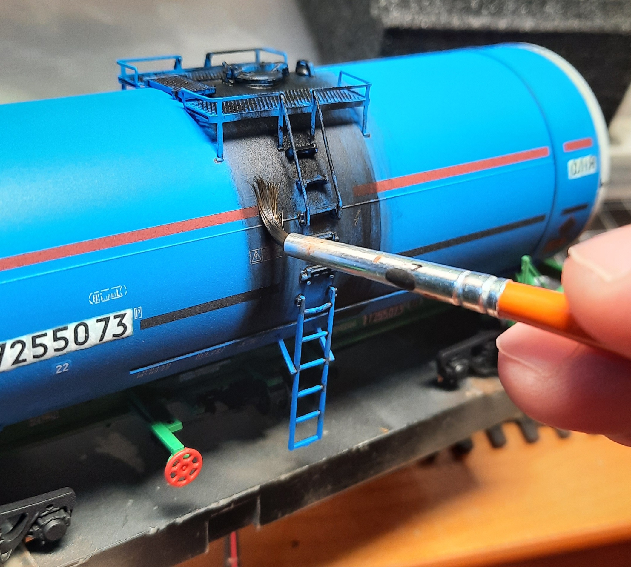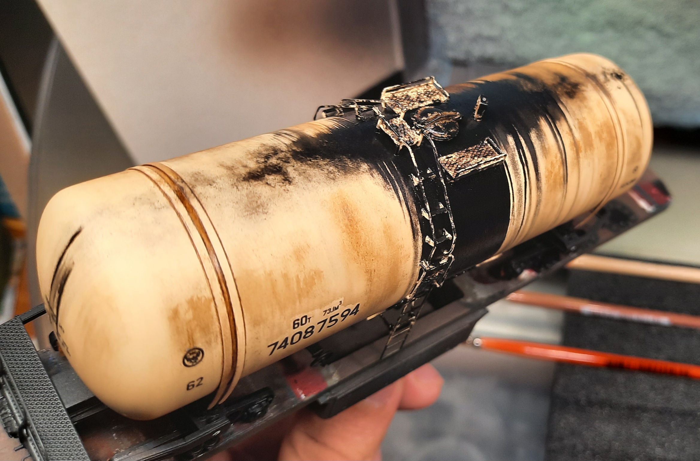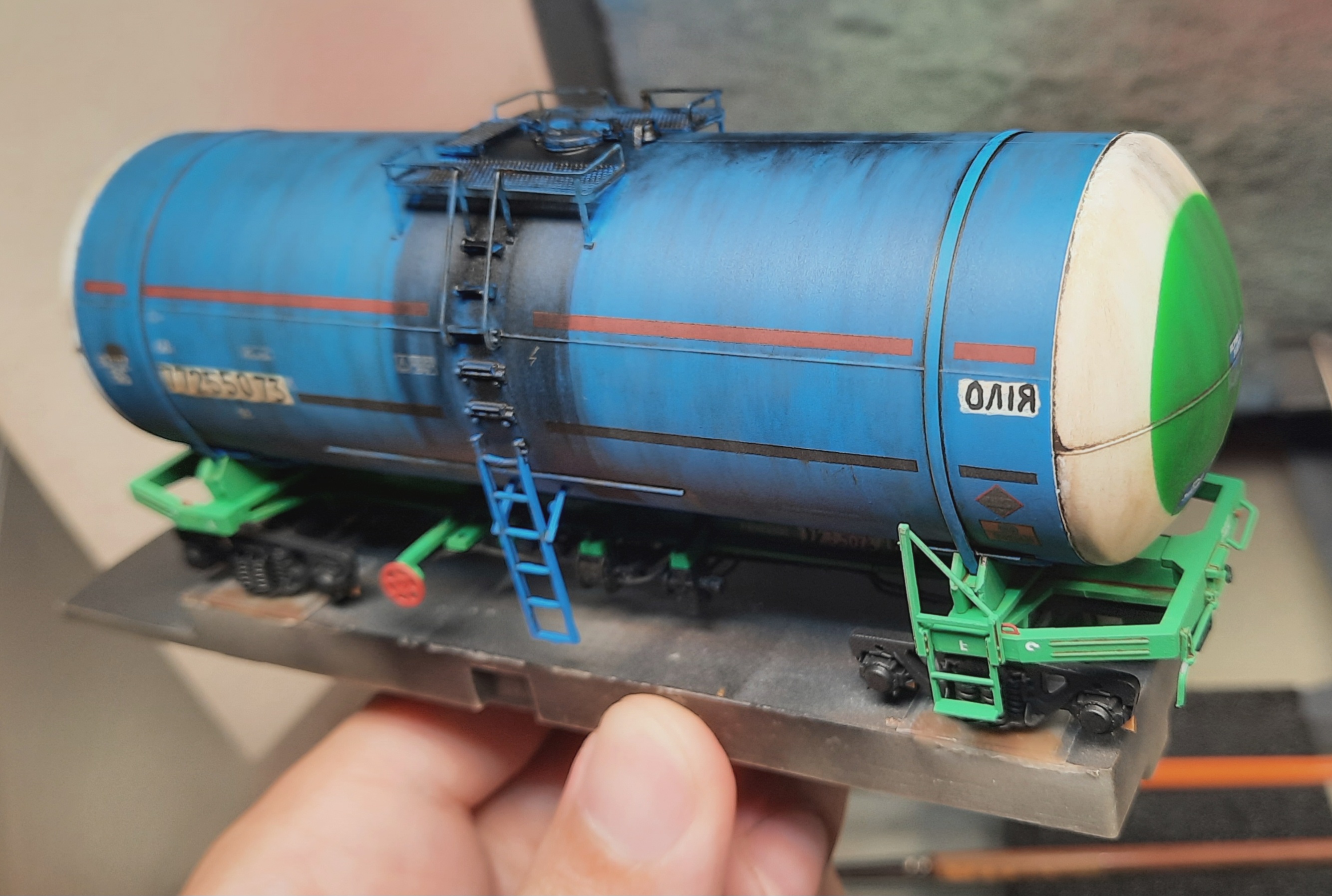 Півроку не торкався свого робочого столу та моделей... Але потрохи почав щось робити. Наразі везеринг цистерни. Попереду ще достатньо роботи, але основне - гарні застарілі плями й потьоки - вийшли непогано.