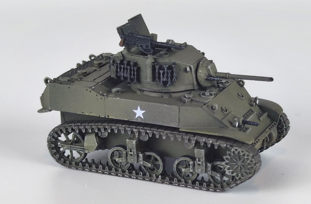 Враховуючи наявність у мене ще 3 моделей Artitec (M5A1 Stuart, Sherman M4A4 та M10A1 Tank Destroyer) та раніше зібраний кіт Alsa Cast танка M3 Lee Medium, вимальовується ось така невеличка колона бронетехніки США цього періоду: