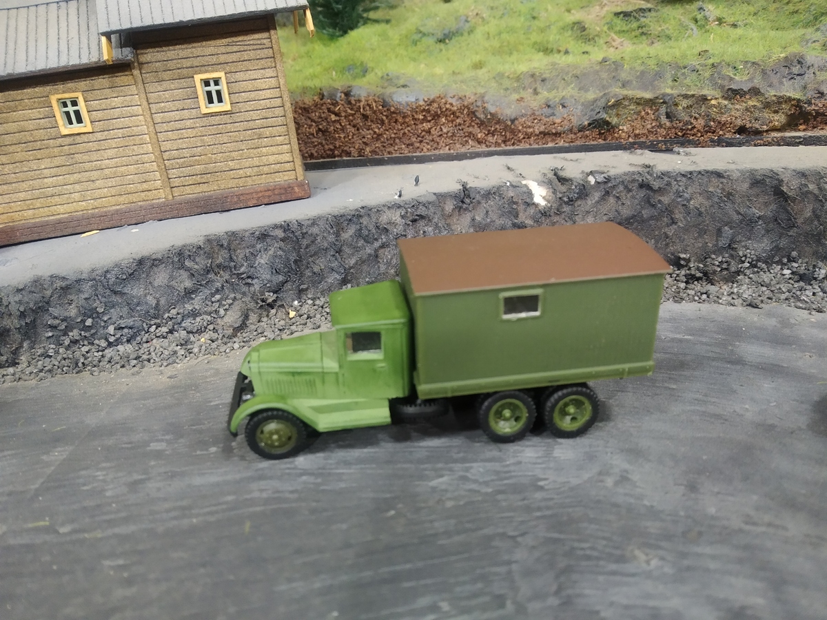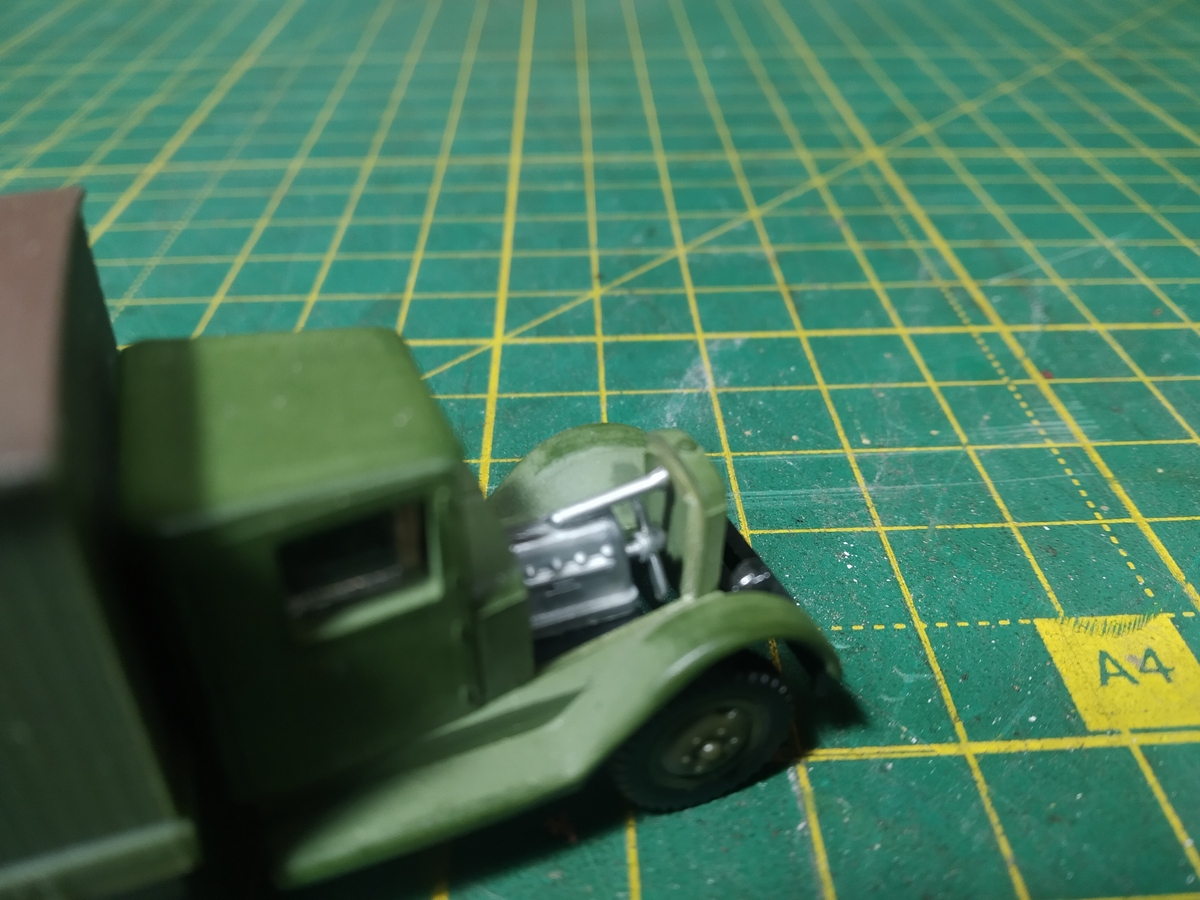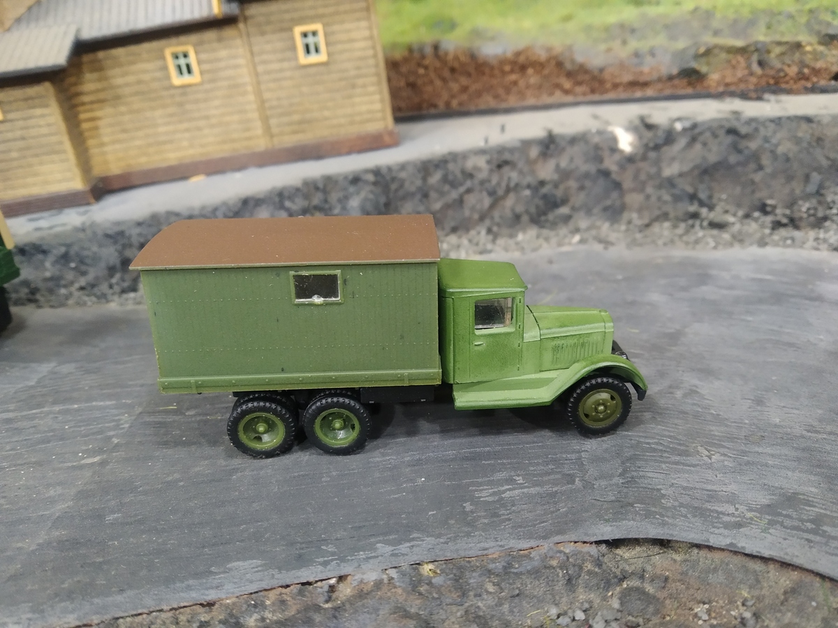 В моїх заначках були деталі від ЗиС-5 "КОМО" і треба було зовсім трошки часу, щоб все це зібрати до купи і отримати в колекцію модель ЗиС-6 кунг. Кабіну не фарбував. Залишив в кольорі, який колись обрав кум. Невідомо, яка в нього була задумка, але нехай так і залишається... Нагадаю, що на самих перших моделях знімався капот и було встановлено імітацію двигуна.