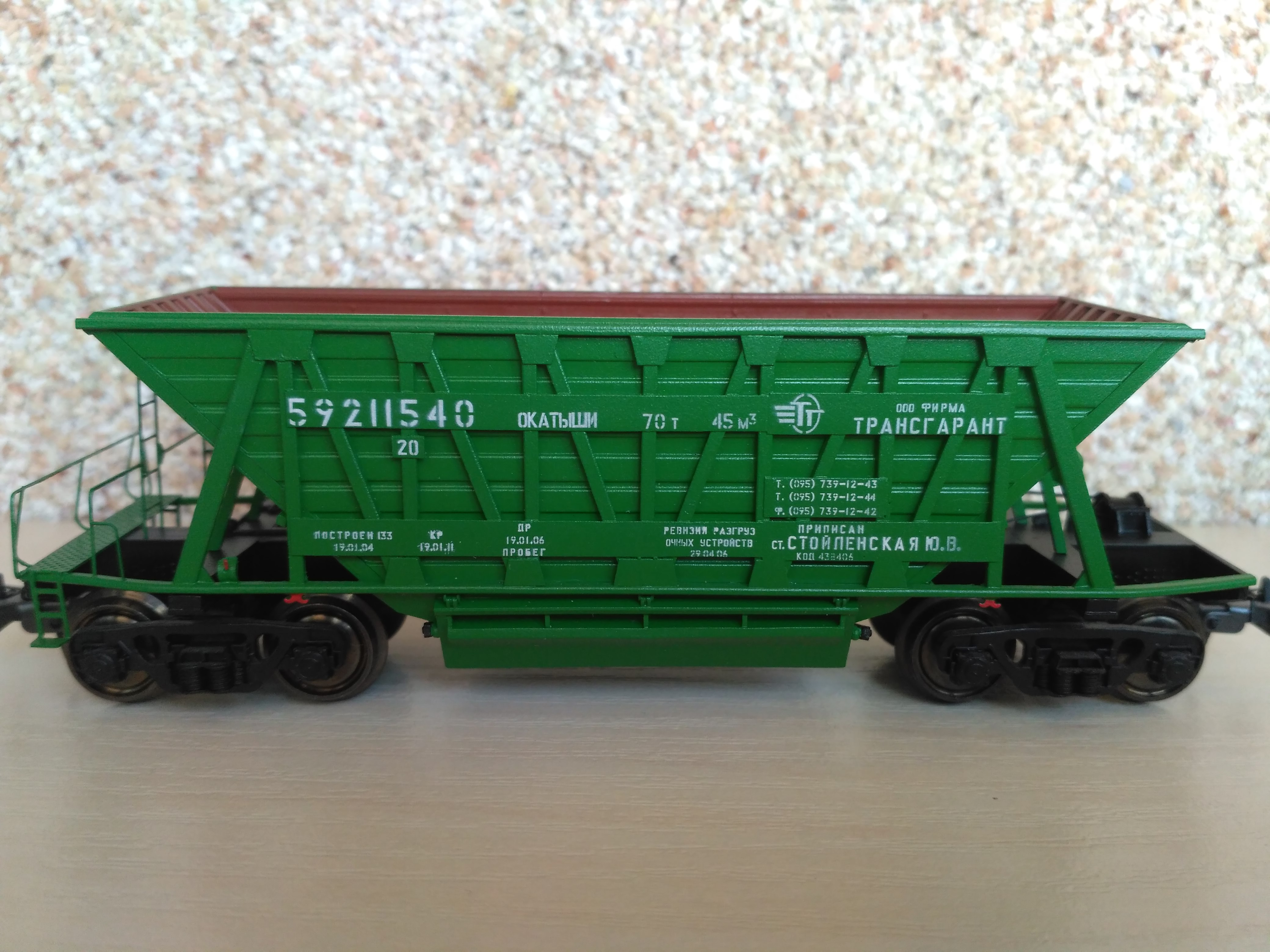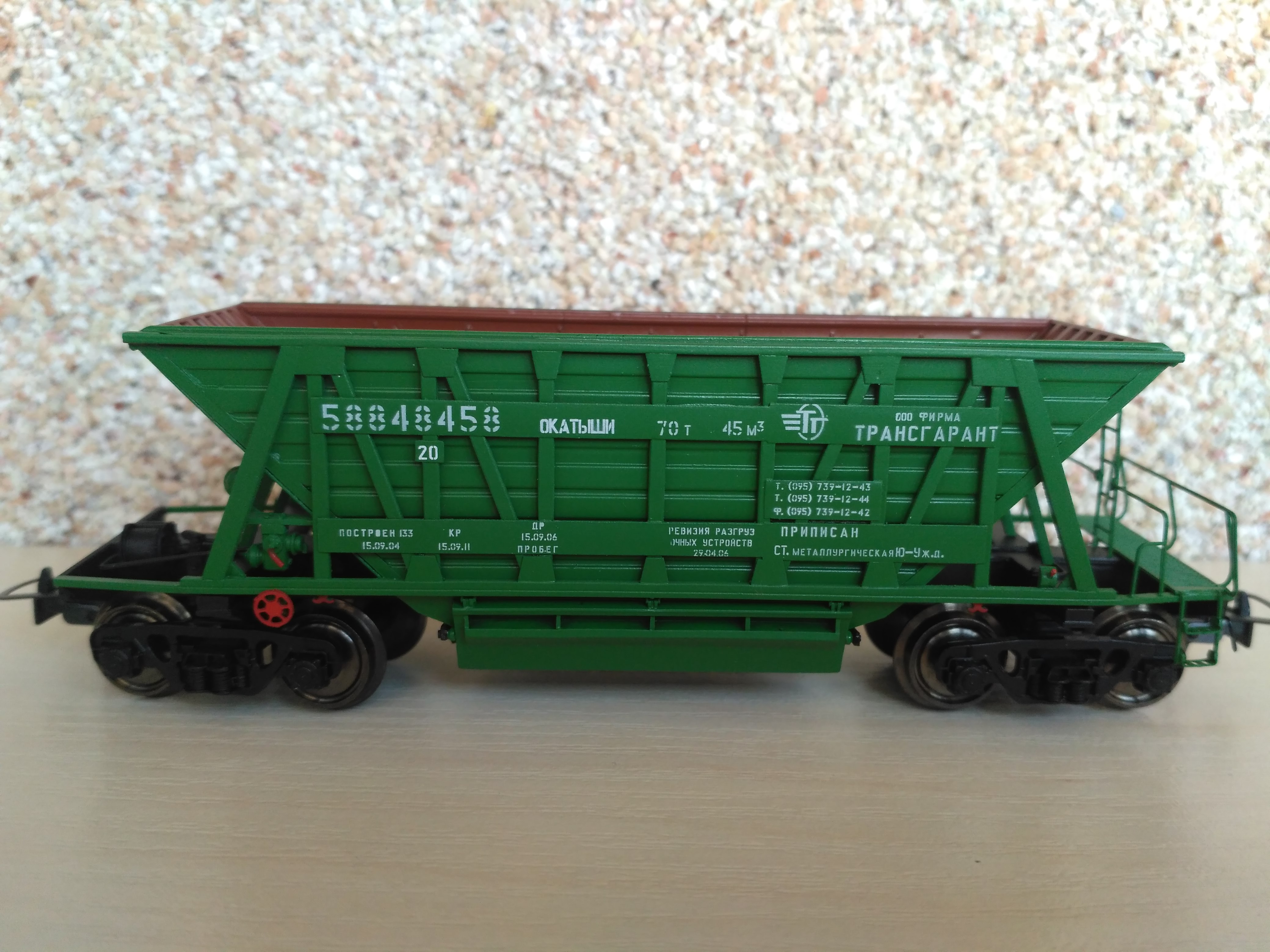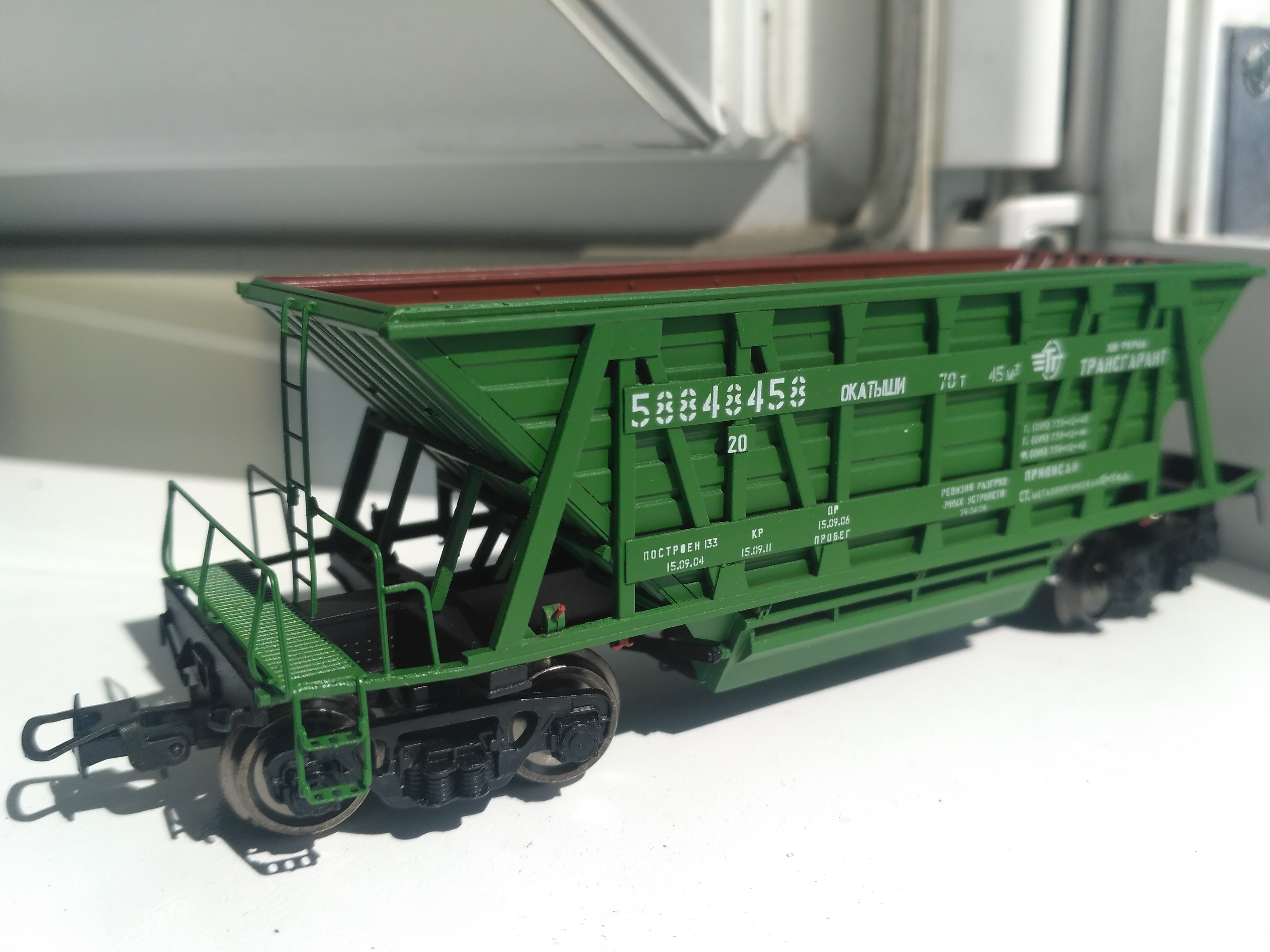 Просто бомба! Есть с чем сравнить - на полке аналогичный вагон, от В. Орешко. Не дотягивает по уровню исполнения до минераловоза от Сергея