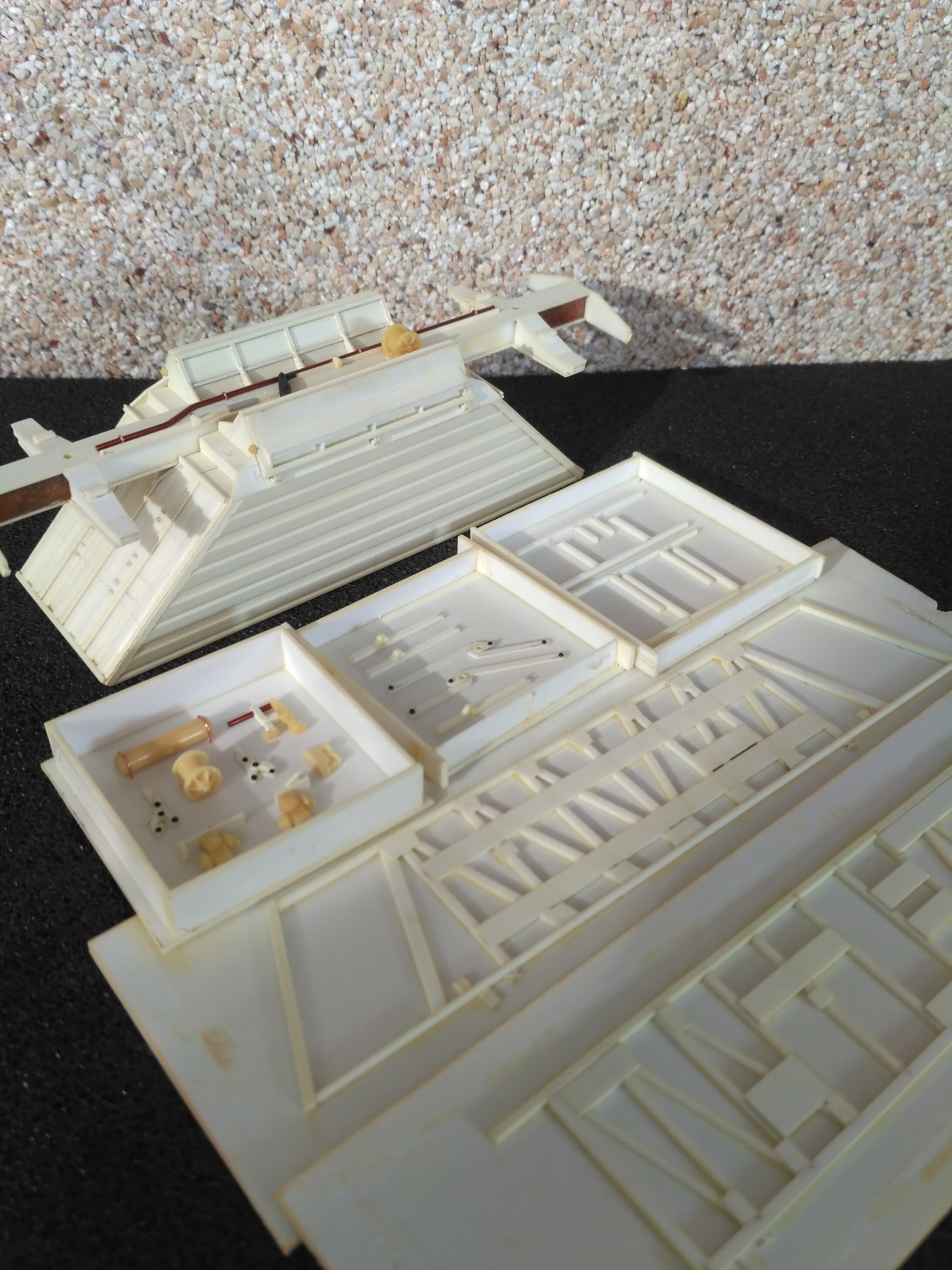 То о чём вы спрашиваете, это набор мастермодельных деталей приклеенных на плоское основание с опалубкой, готовый к формовке силиконом. В дальнейшем получается плоская форма для литья этих деталей, которые отдельно приклеиваются к модели во время сборки