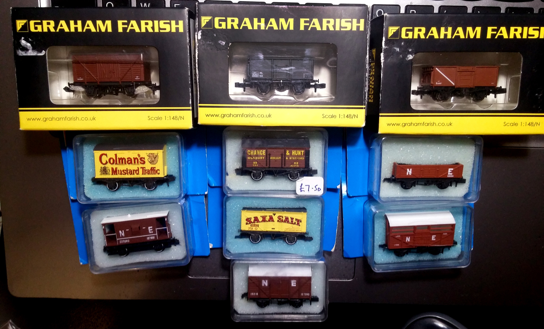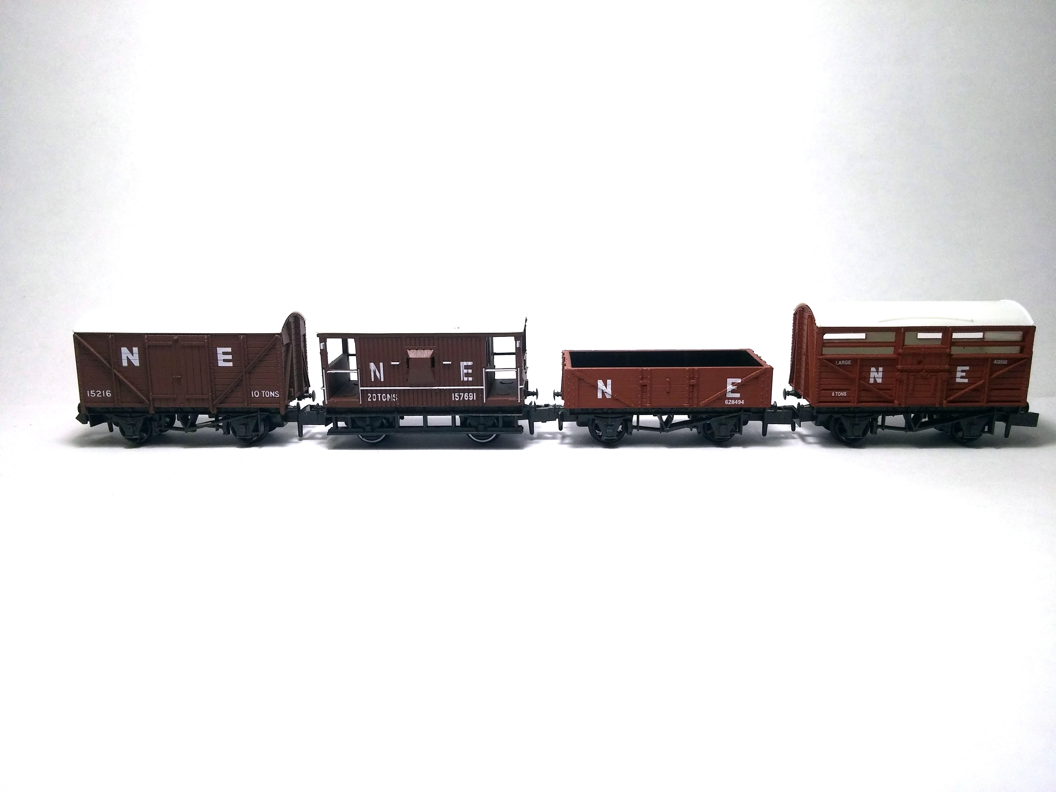 По британскому делению эпох, верхний ряд от Farish это 5 эпоха - UK rail era 5. BR steam. Late Crest:1957-1966. Два крайних коричневых более ранние - года до 64-го, средний - более поздний (надписи на вагоне обведены рамочкой).