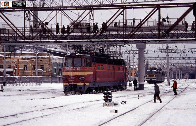Также от себя еще добавлю, что пригород Киева первое время был на постоянном токе, так что электросекции СР были привычным делом: Также в то время попадались трофейные немецкие поезда (то ли с S-Bahn, то ли с U-Bahn): В той части вокзала, где сейчас подземный переход возле метро, до начала 2000-х был пешеходный мостик над путями: