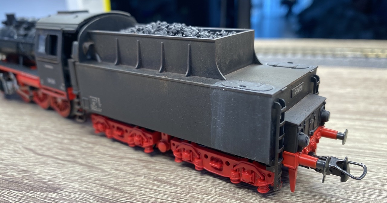 4. Нижня частина корпусу оброблена коричневим сухим пігментом задля імітації пилу з рейок