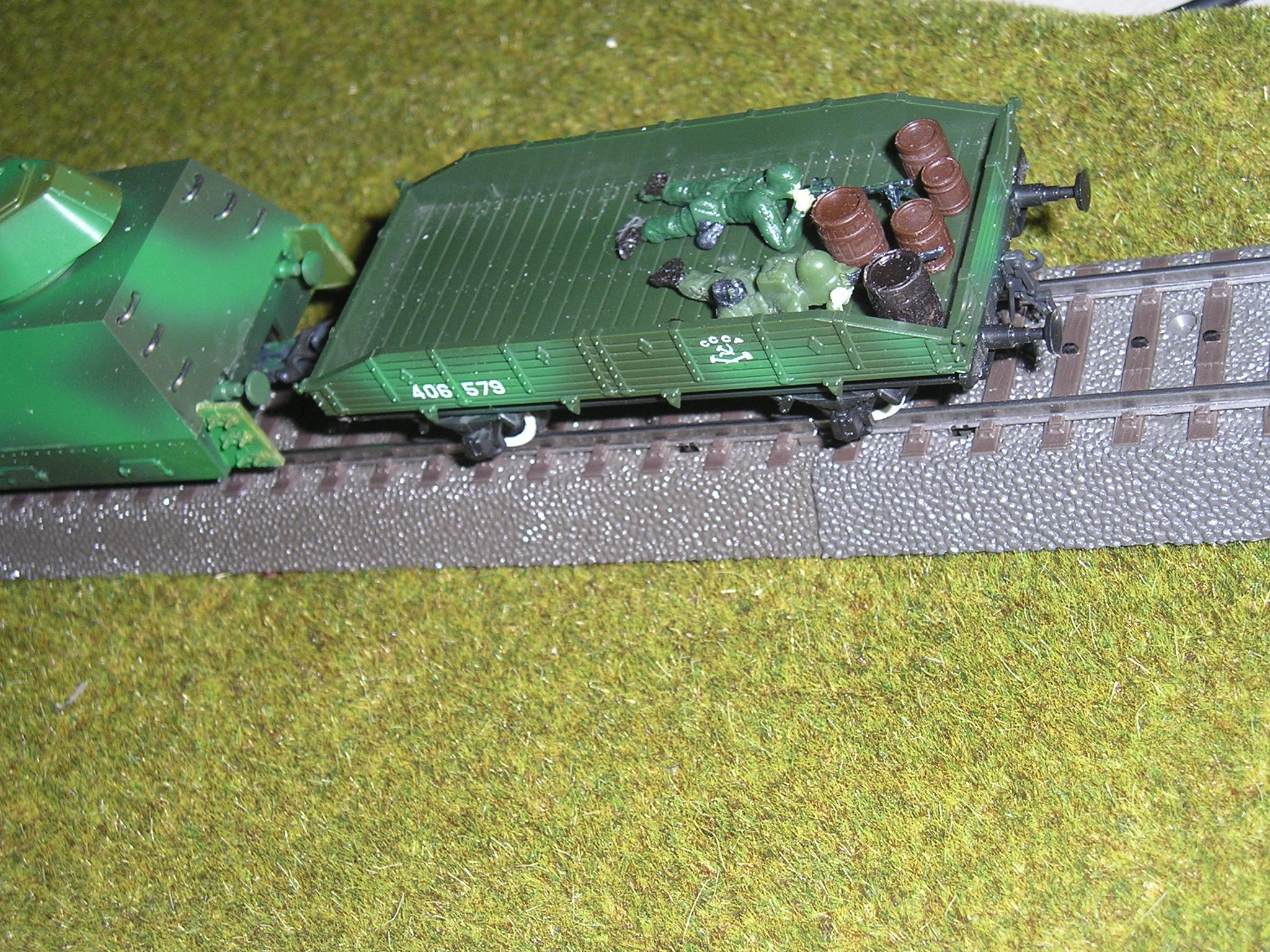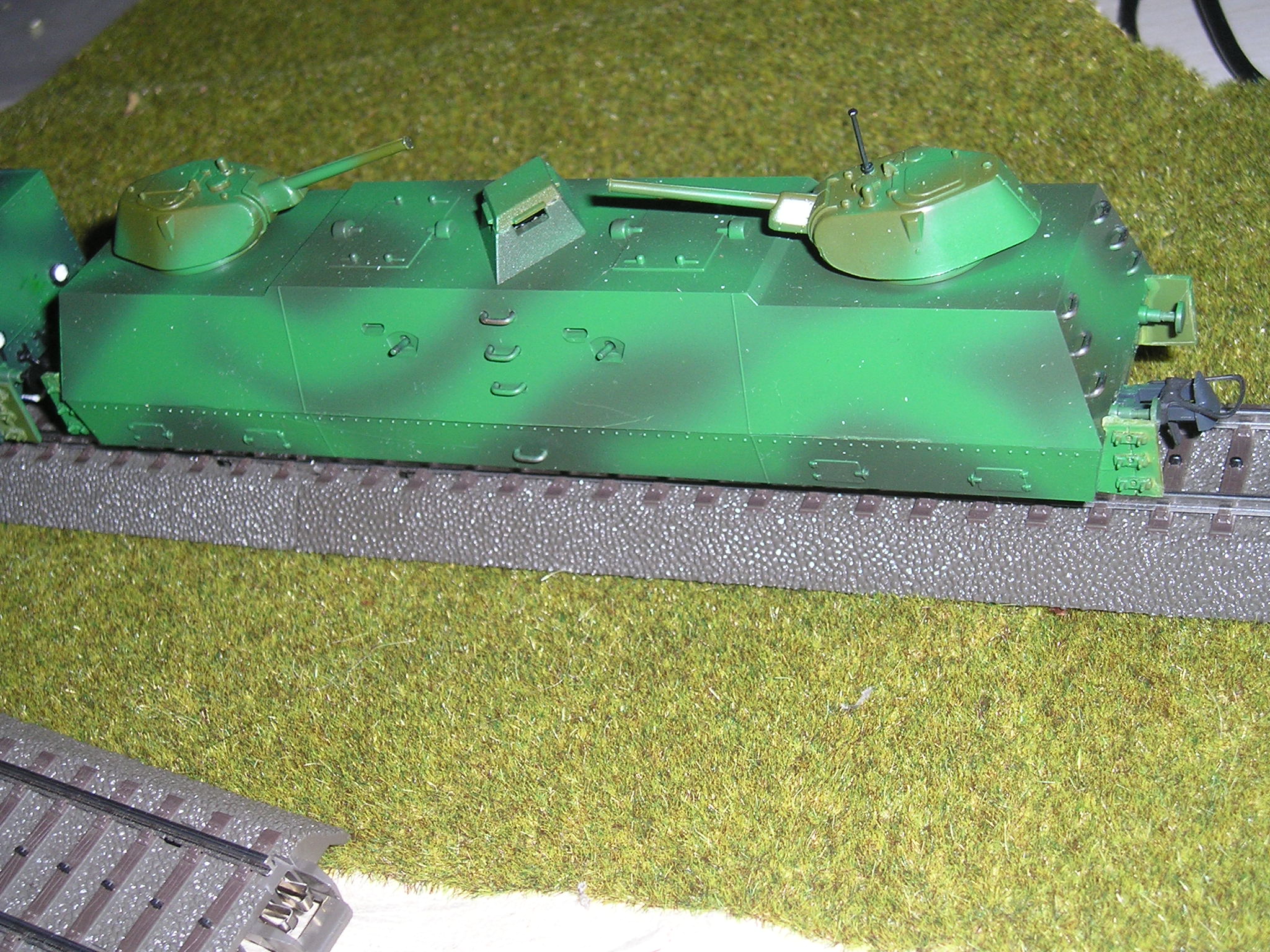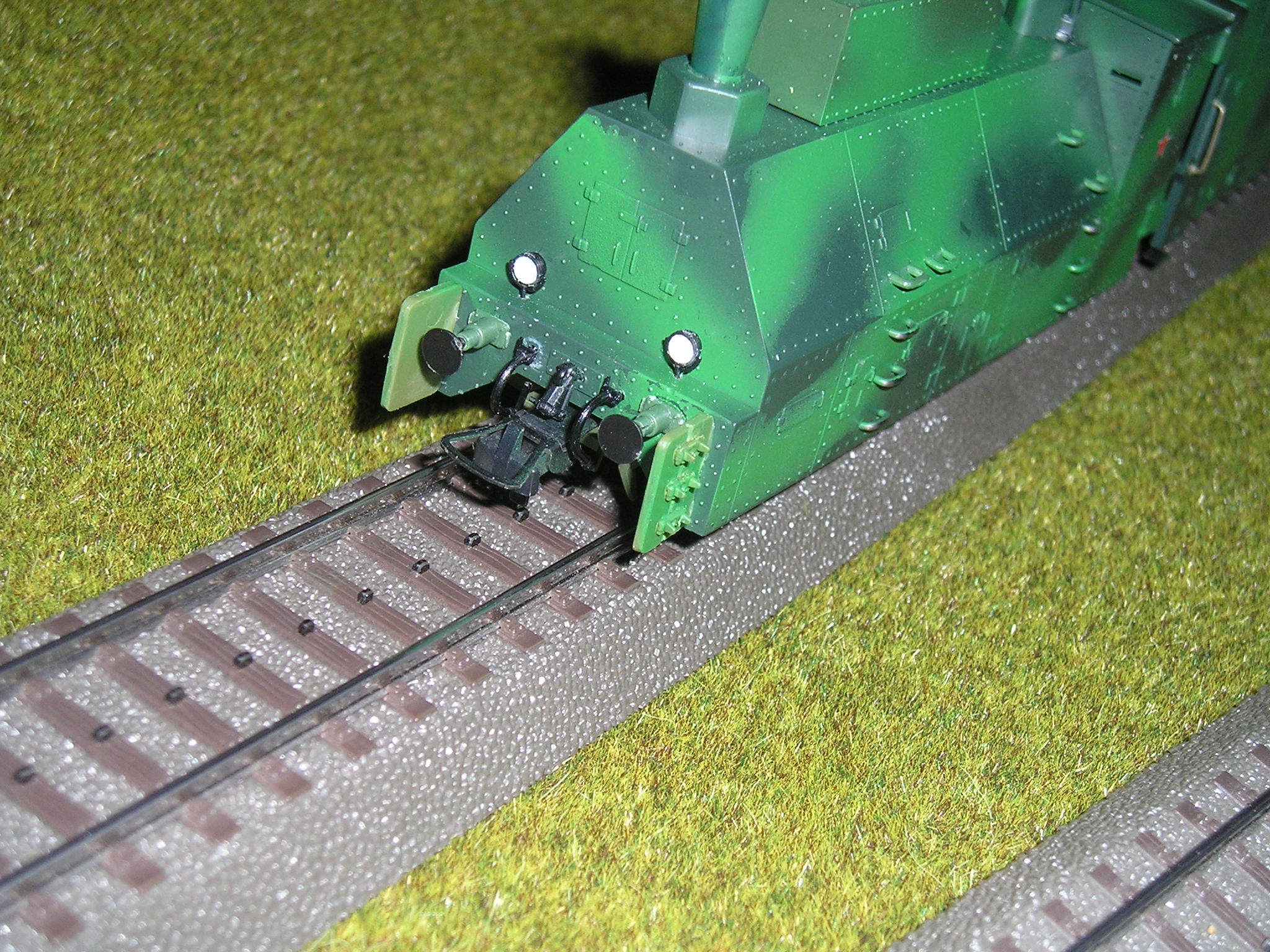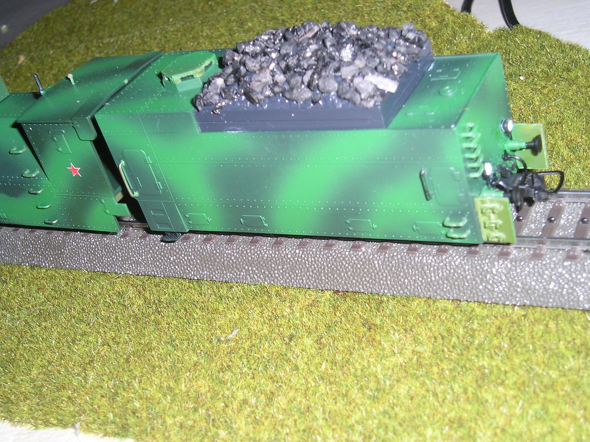 На конец-то закончил работы над бронепоездом -Илья Муроец, Козьма Минин, Юрий Александровичу обещал показать когда-то готовую модель- вот реанимировал, жаль человек что дал его мне пока не увидел его, модель была вообще хламом, использовал паровозные фонари от Олега Волузнева, хотя мог от овечки поставить, колесные пары паровоза Ов Курские, сцепки Роко, некоторые накладные от Овечки и др.фирм