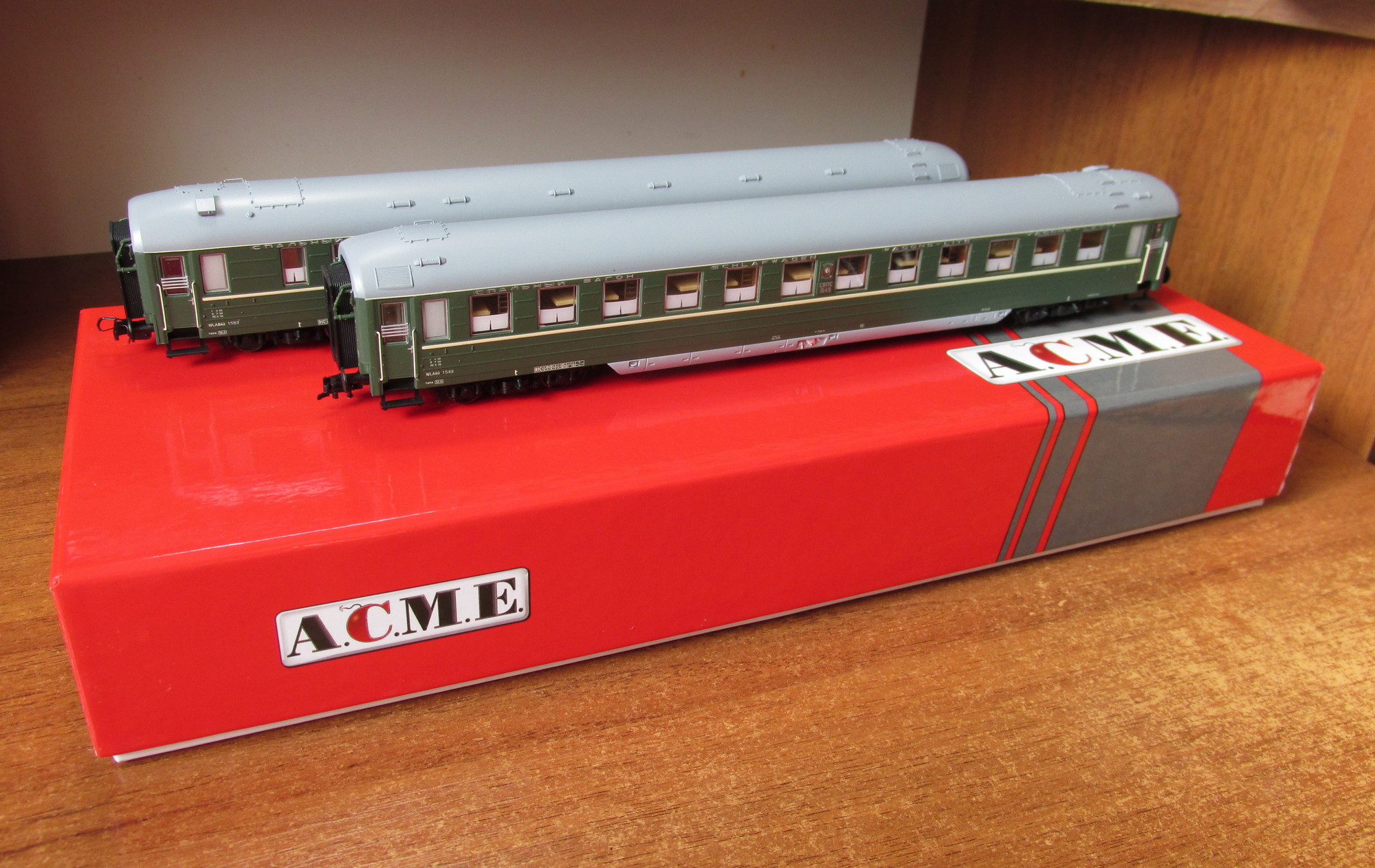 Всем привет! После некоторого затишья, пришлось в очередной раз испытать несколько приятных и волнительных моментов - коллекция пополнилась новыми экземплярами! Прежде всего, приехал долгожданный набор спальных вагонов WLA4u от ACME. Открываем добротную упаковку, извлекаем два красивейших вагона. Что тут горворить - всё видно на фото!